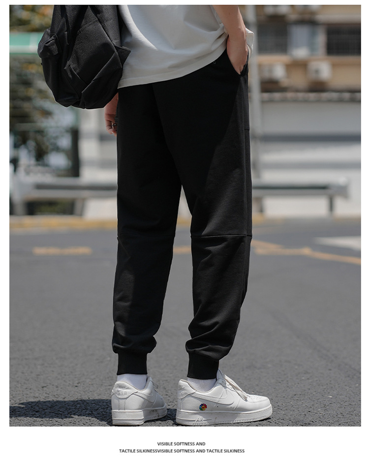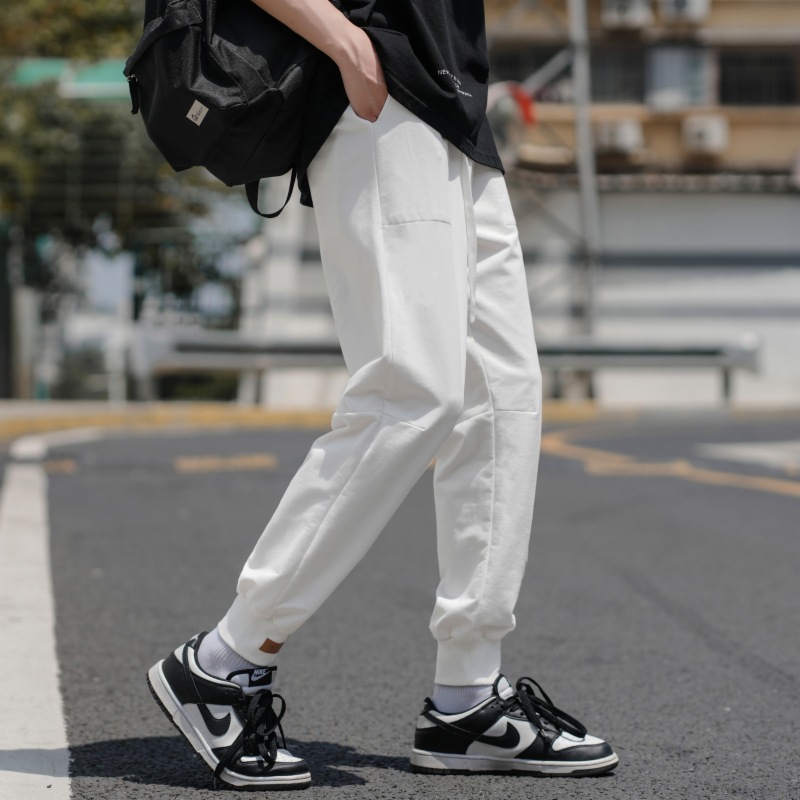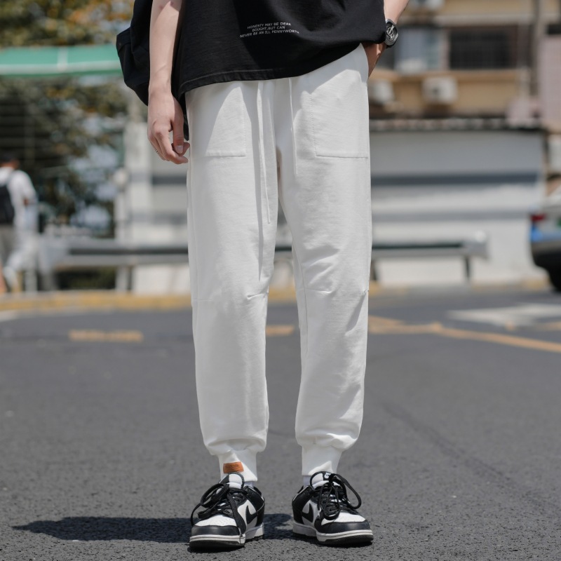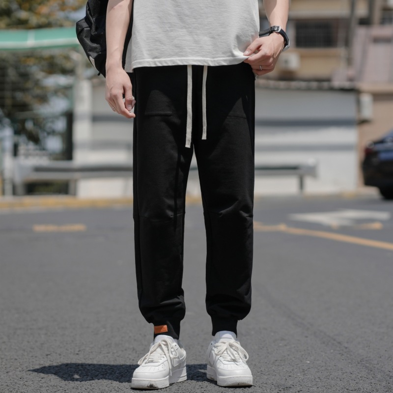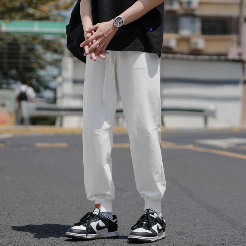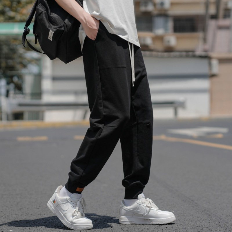 裤子男 夏季薄款纯色棉质束脚九分裤 男生潮牌宽松男士运动休闲裤