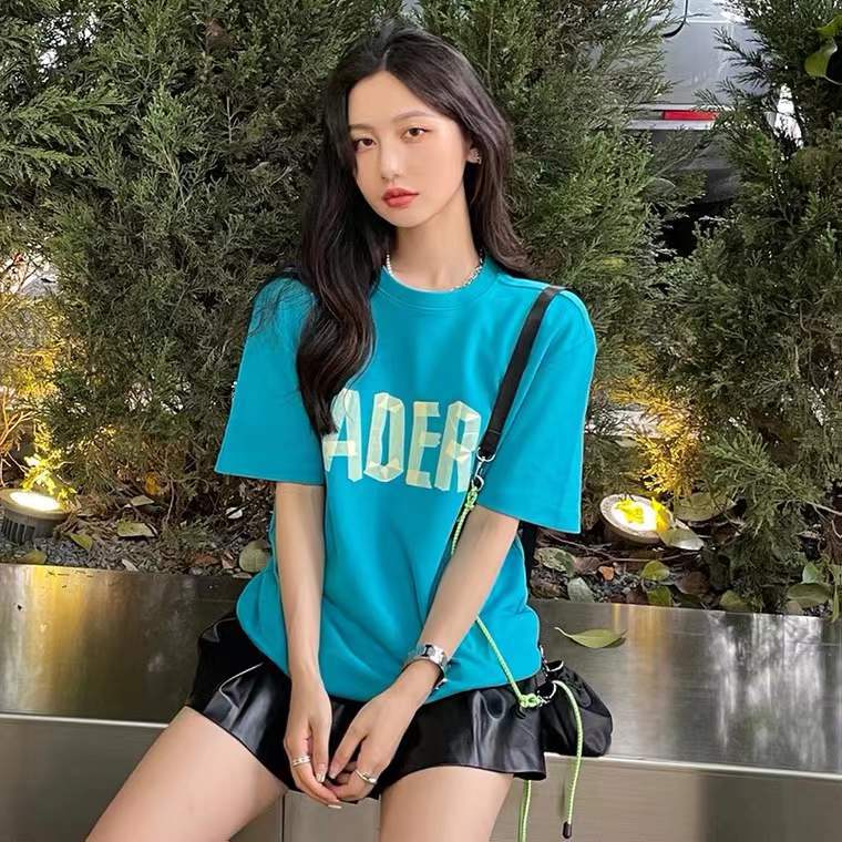 小众潮牌ADER字母折纸胶带印花短袖 宽松休闲半袖男女同款情侣T恤