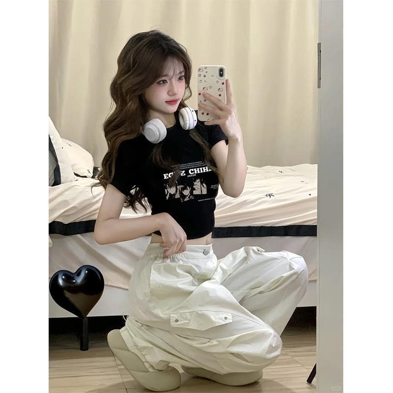 y2k千禧辣妹风小个子短款短袖女款夏季新款小众性感掐腰正肩上衣