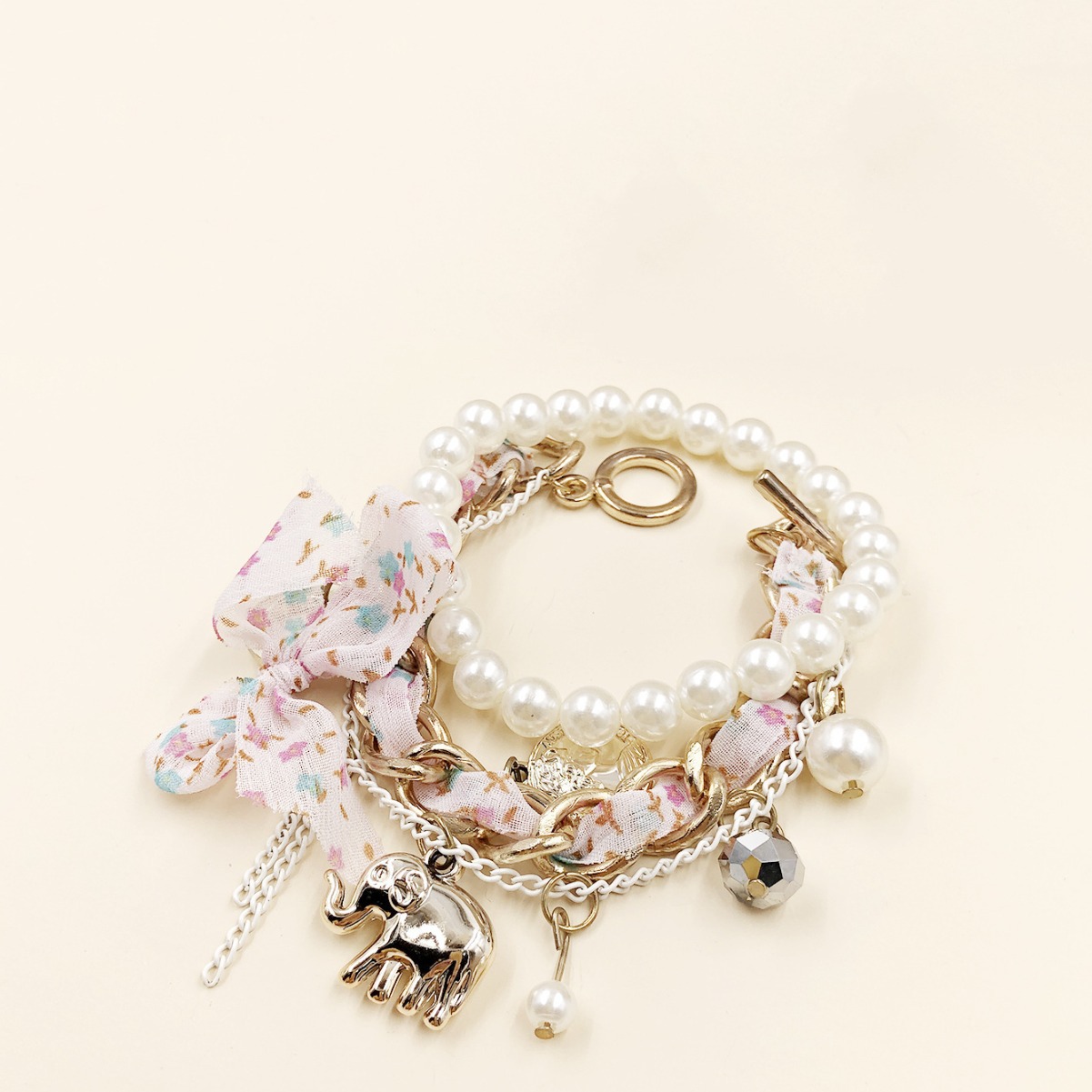 多层珍珠弹力手镯饰品 韩版时尚碎花珍珠大象可爱水晶手链女B4215