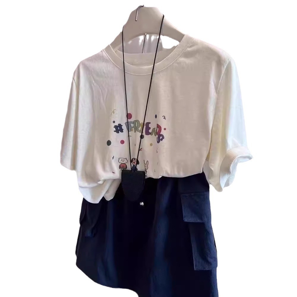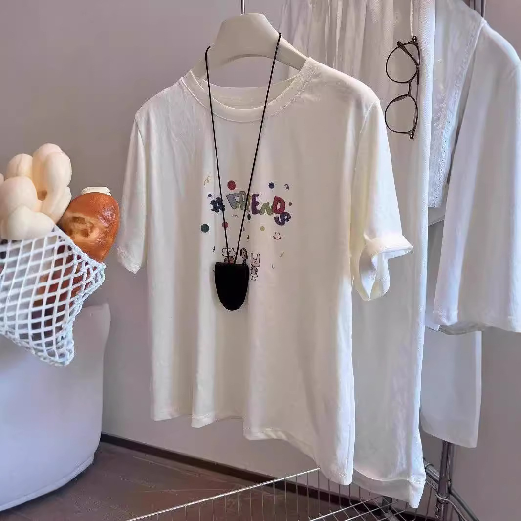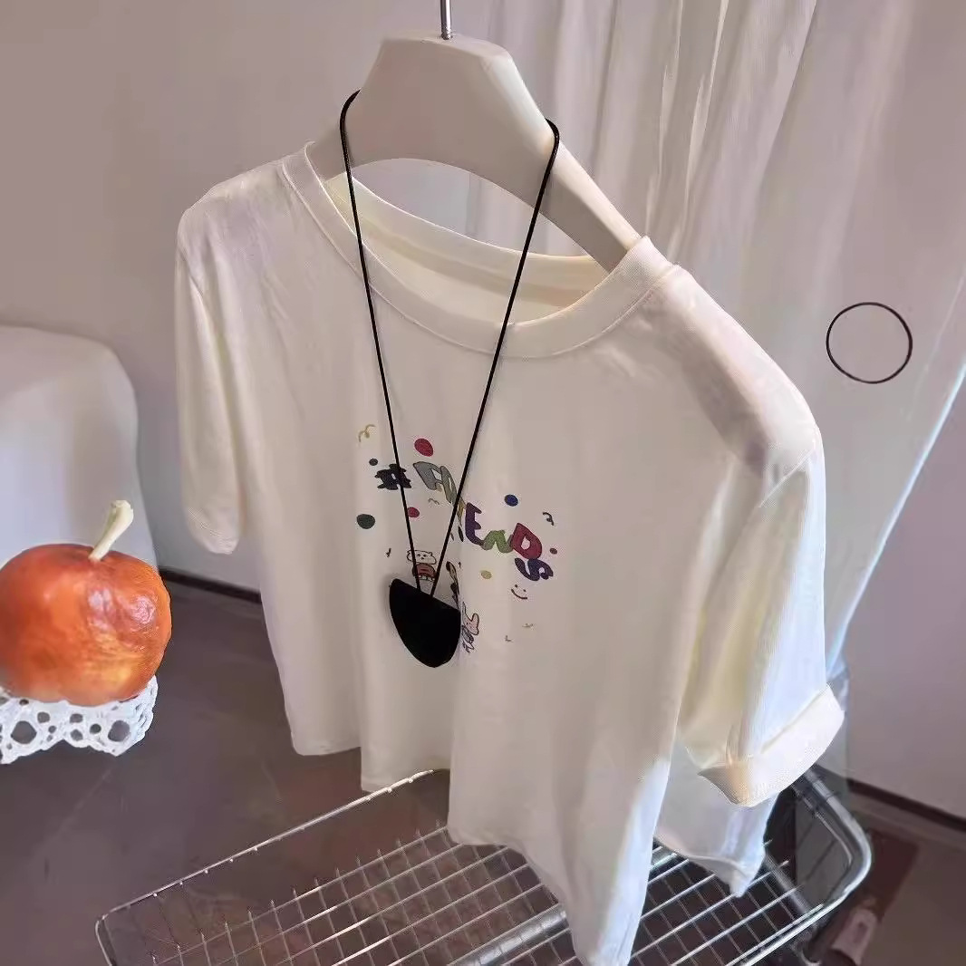 抽绳设计感方领短袖T恤女字母印花时尚修身夏季新款百搭休闲上衣