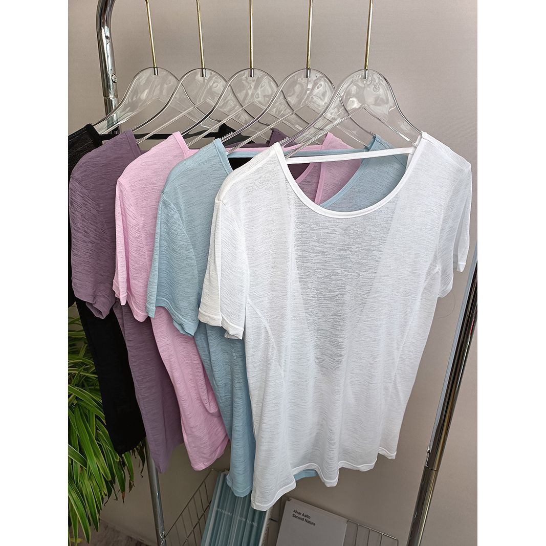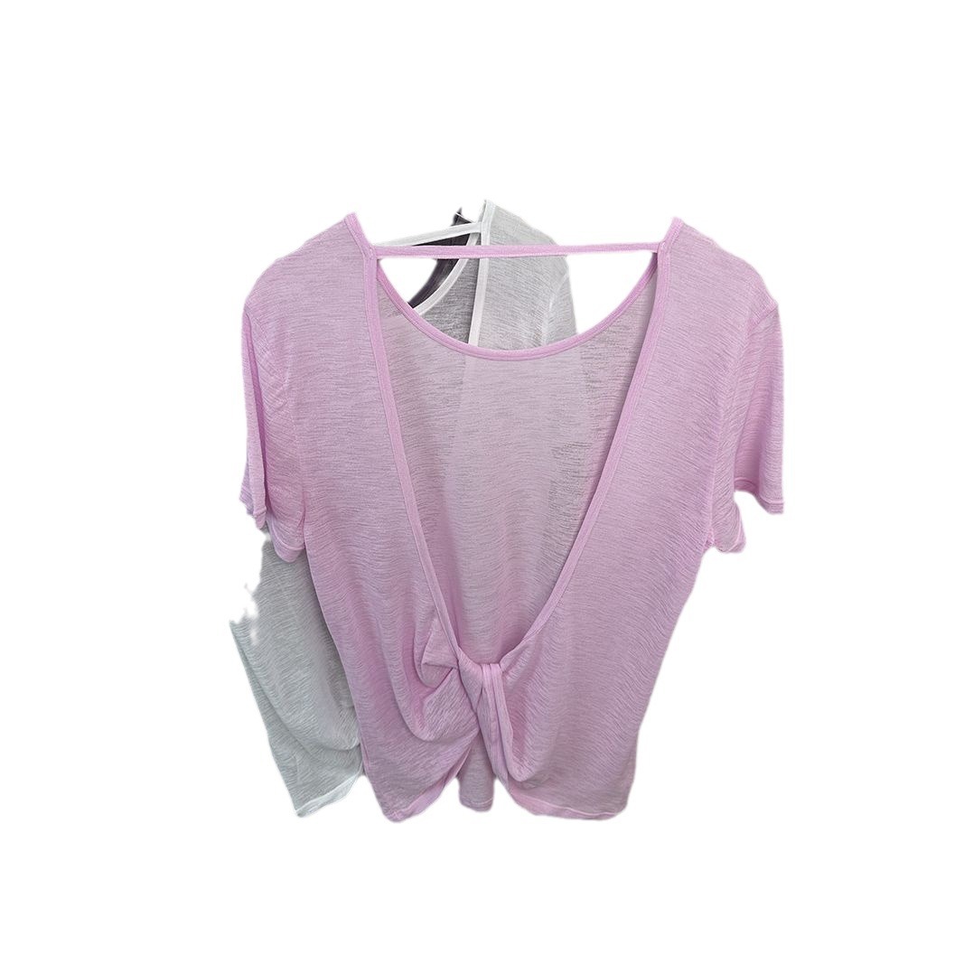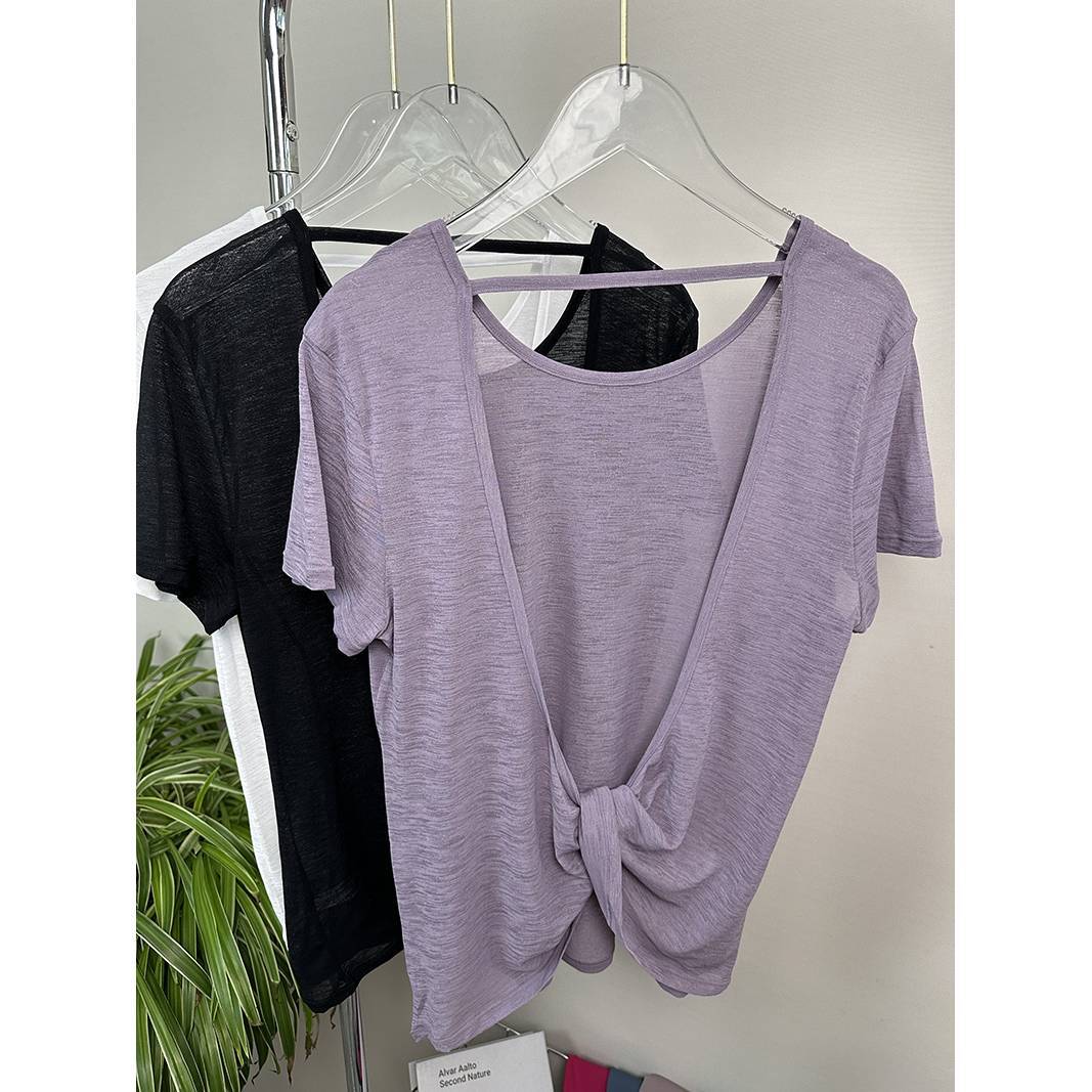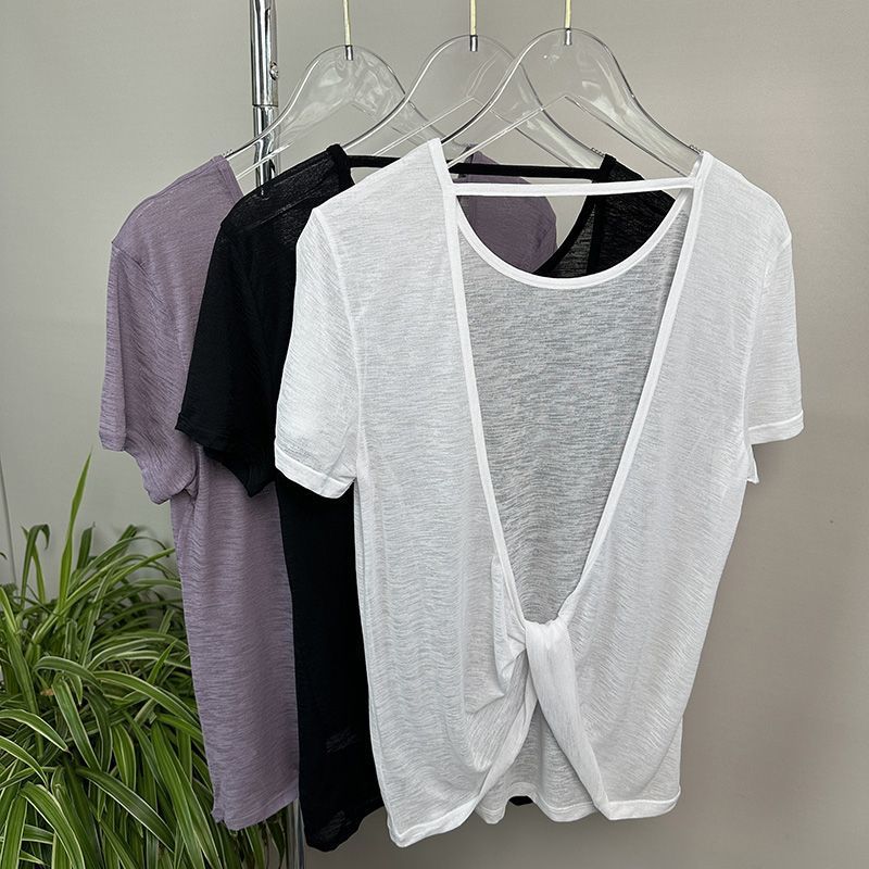 交叉露背瑜伽罩衫 网纱透气运动短袖 竹节纱薄款T恤防晒上衣