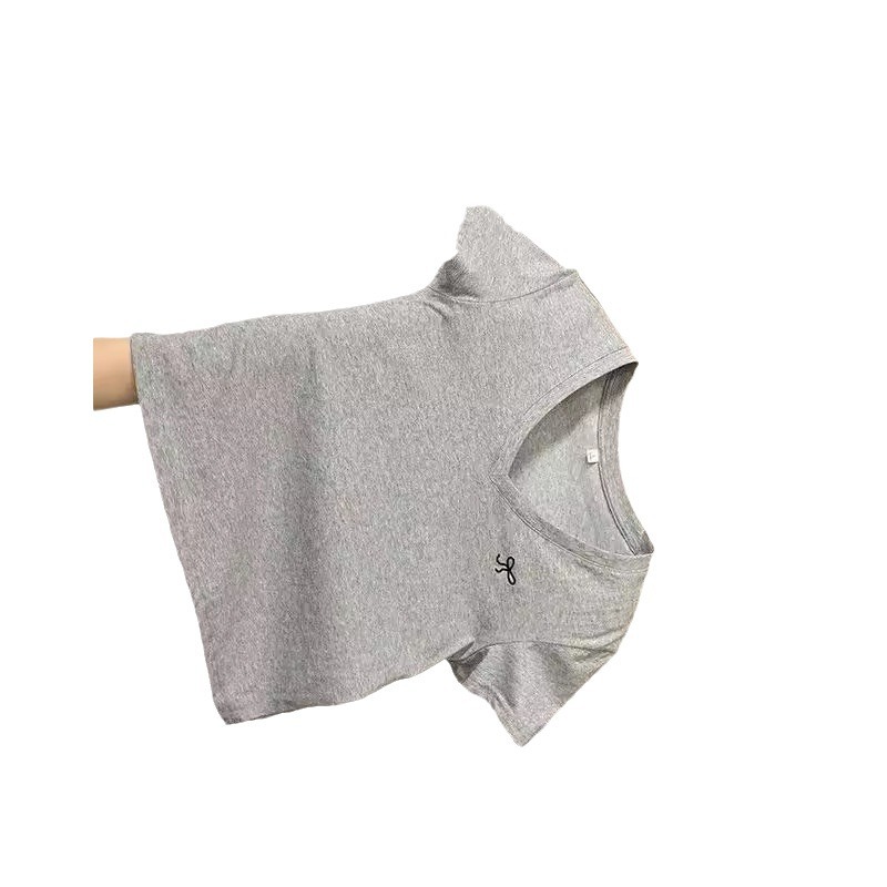 夏季新款正肩纯棉宽松灰色短袖t恤女设计感小怪兽质感上衣潮