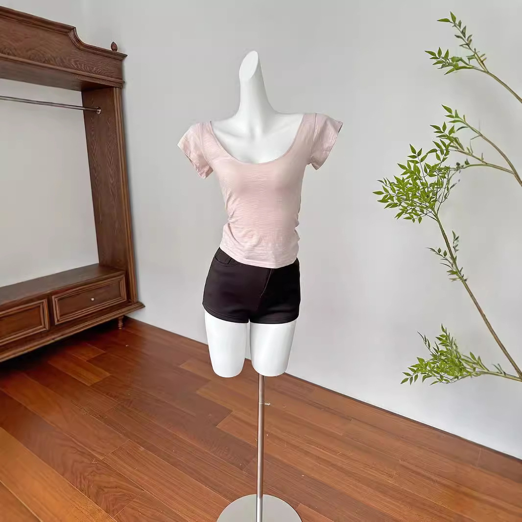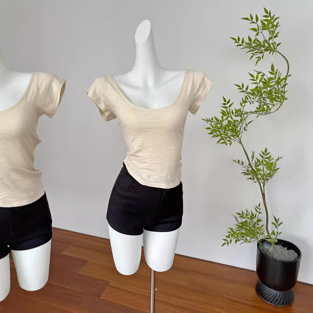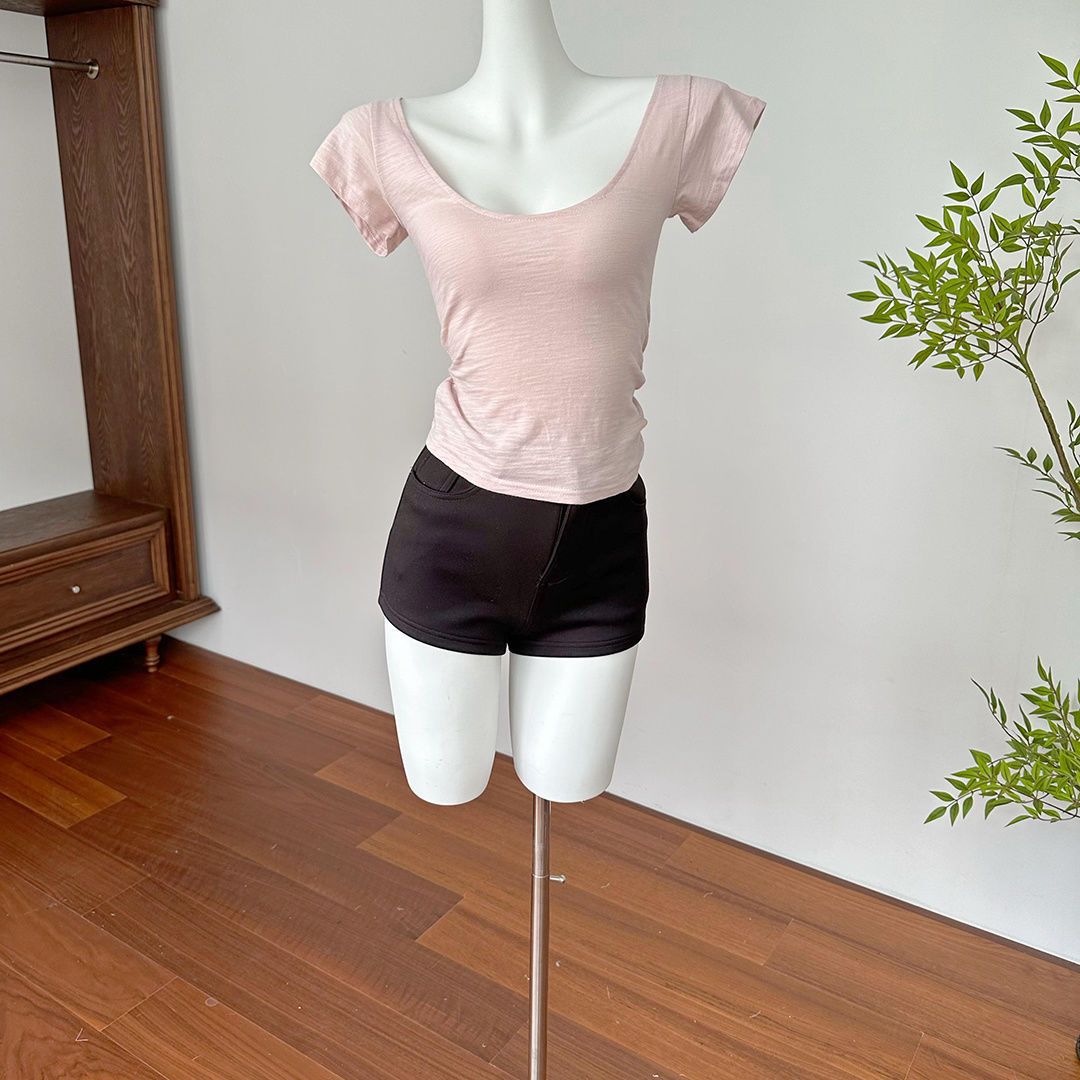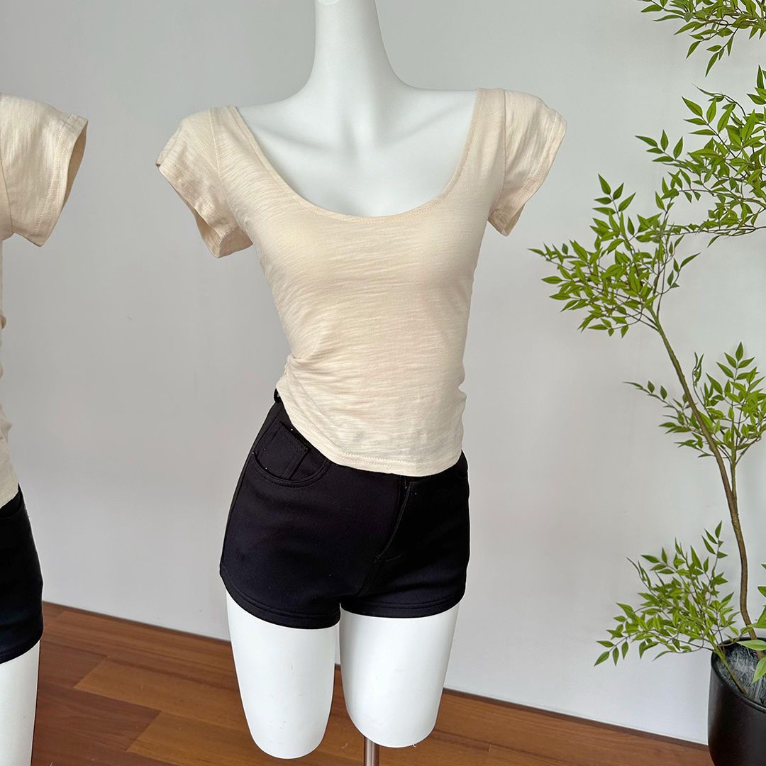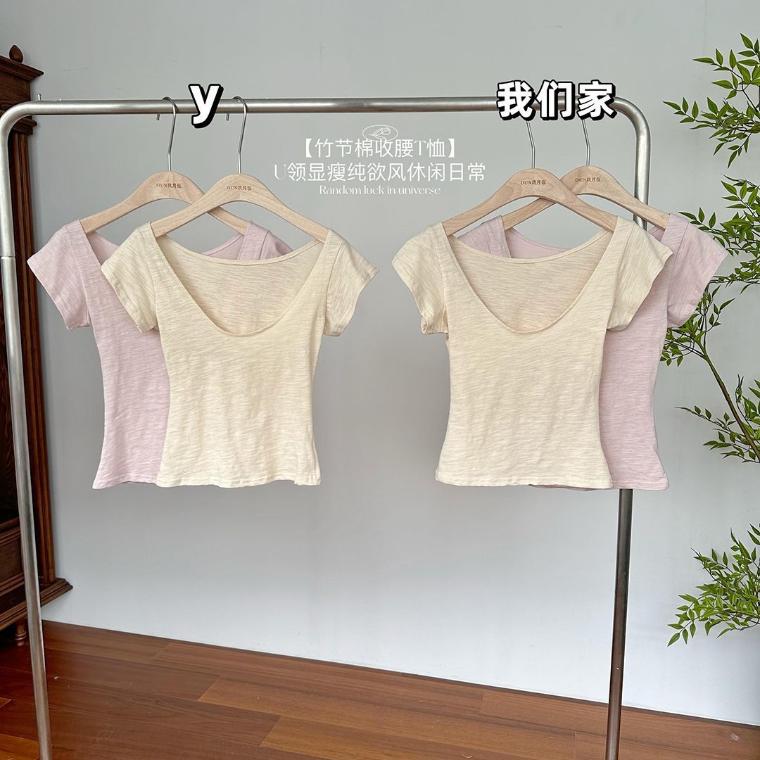 纯欲短袖T恤女夏辣妹性感小心机收腰竹节棉小个子圆领短上衣