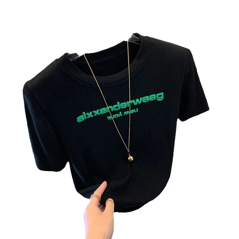 设计感字母印花正肩短袖t恤女夏新款修身显瘦露脐甜辣妹上衣ins潮