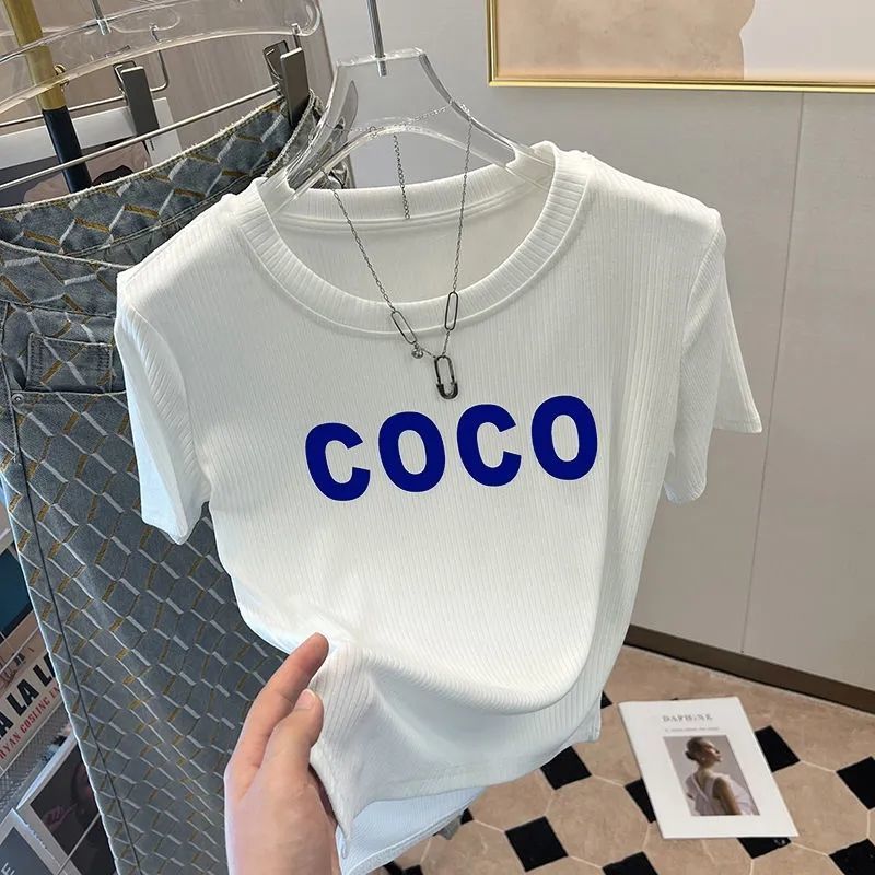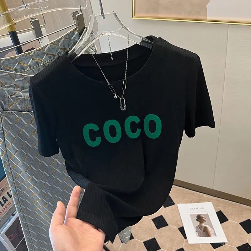 纯欲短款上衣设计感小众夏季修身显瘦字母印花短袖T恤女ins潮