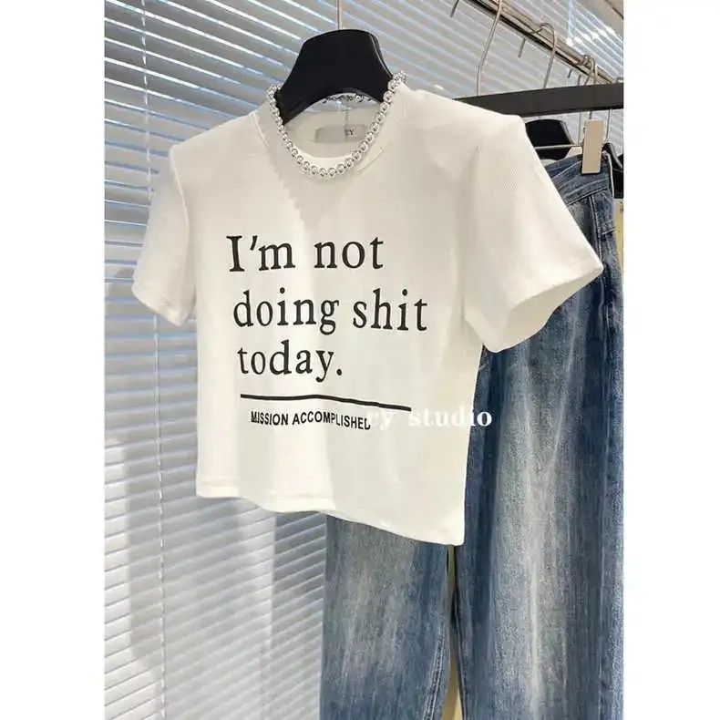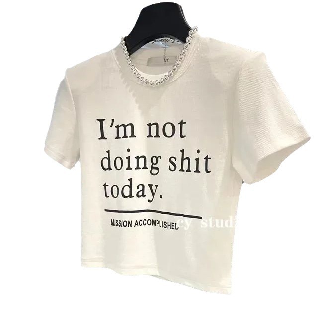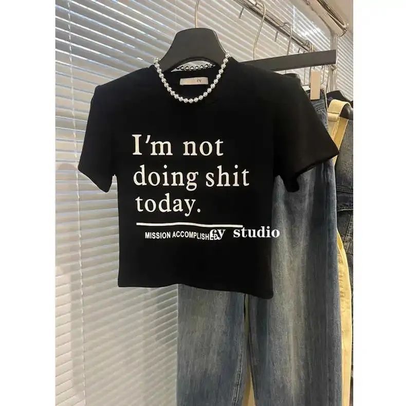 纯欲显瘦夏季新款简约圆领字母印花修身短款百搭短袖T恤女ins潮