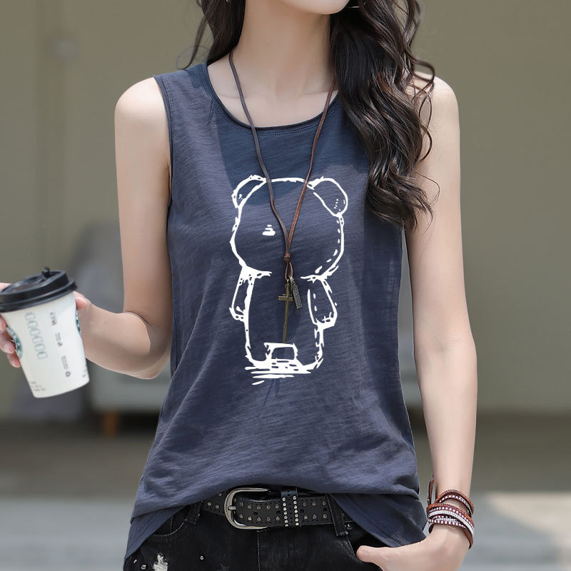 夏季新款纯棉外穿背心女韩版宽松大码百搭印花无袖上衣打底衫