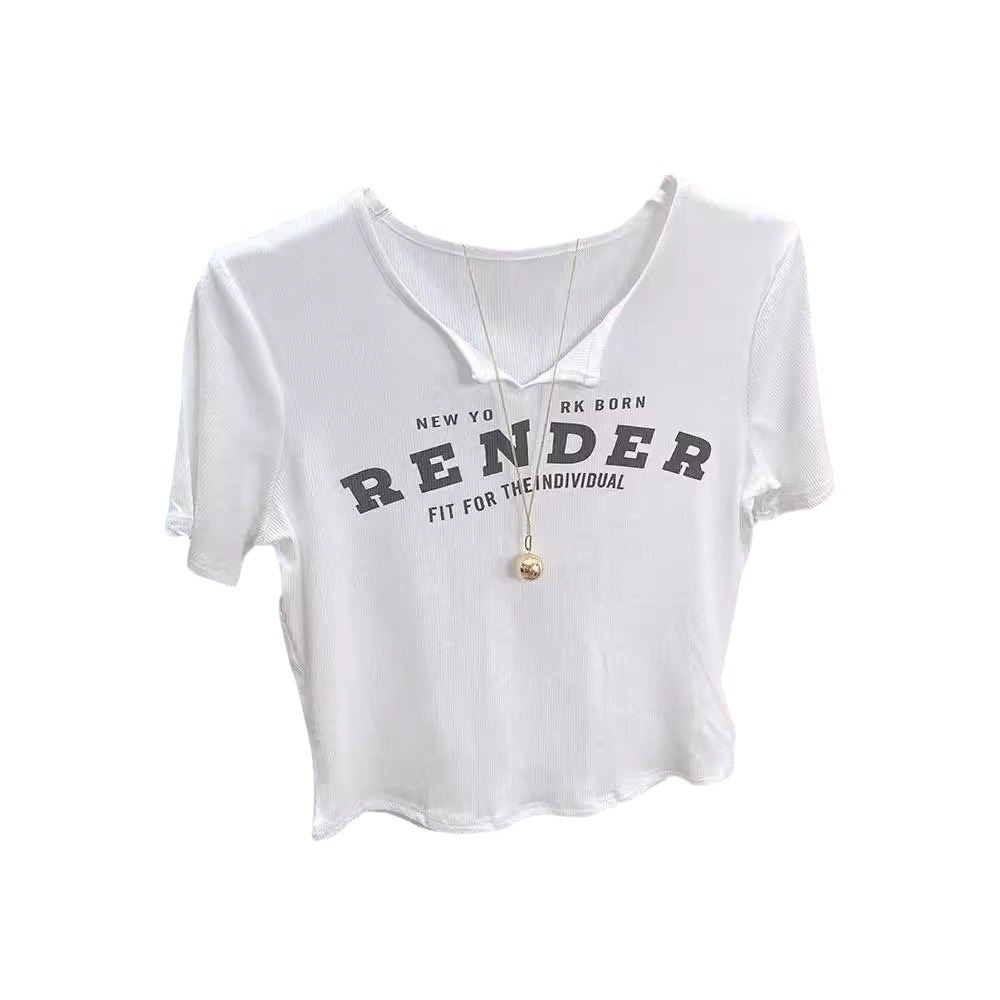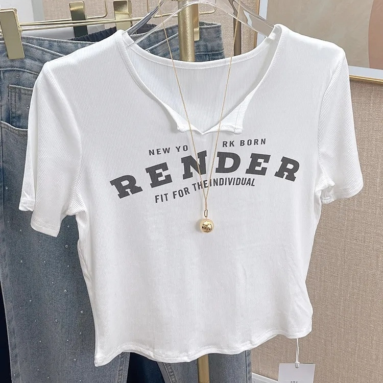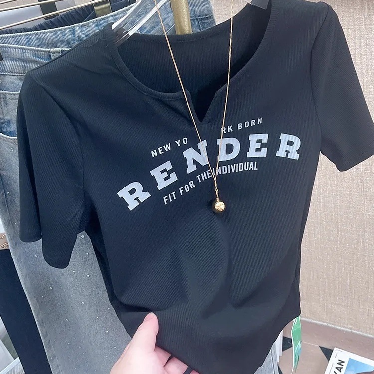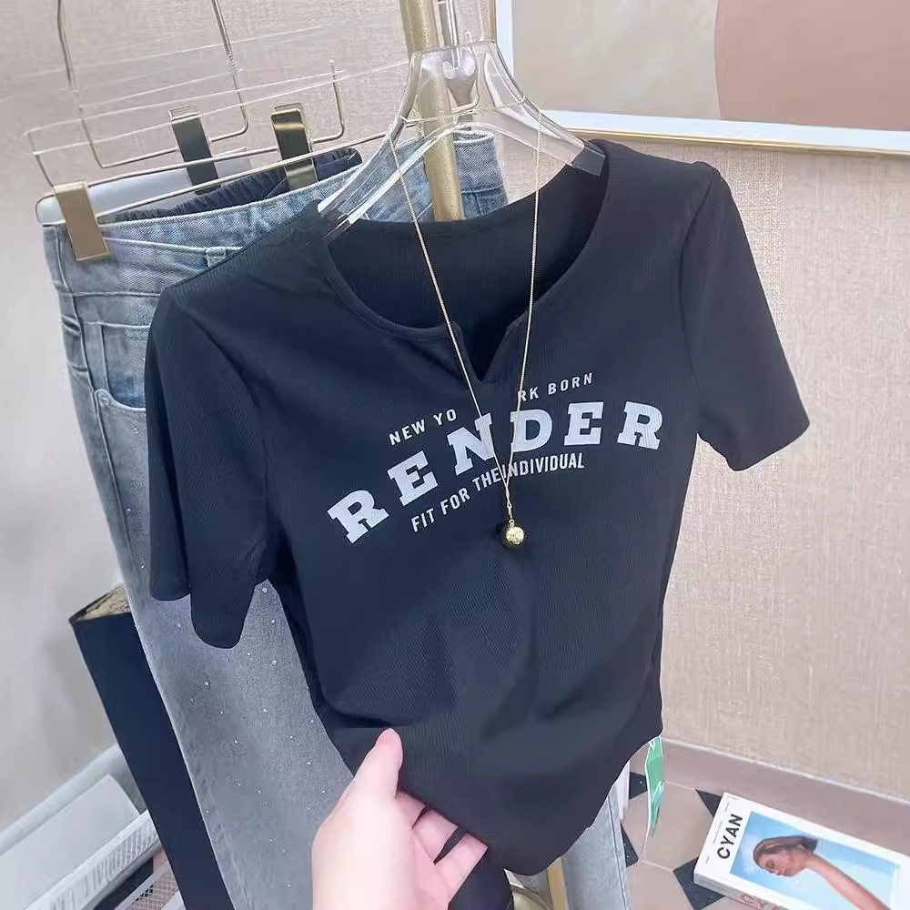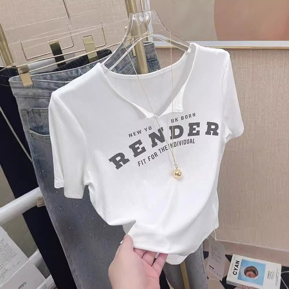 大码夏季新款微胖mm设计感显瘦遮肚韩版女装V领短袖女生T恤衫上衣