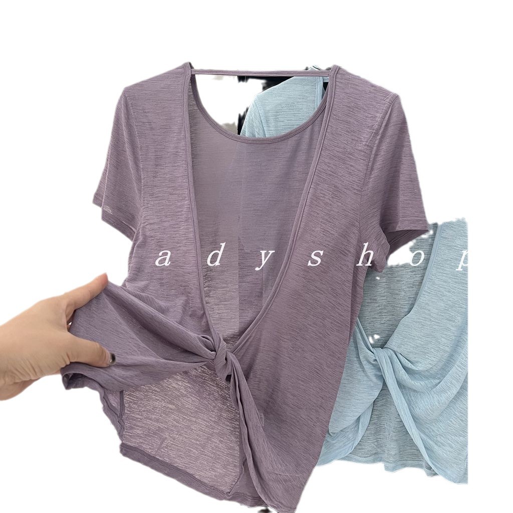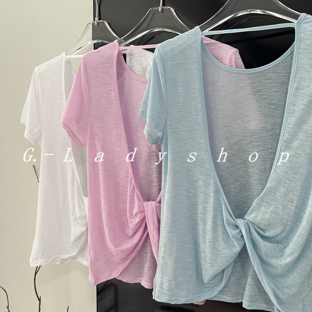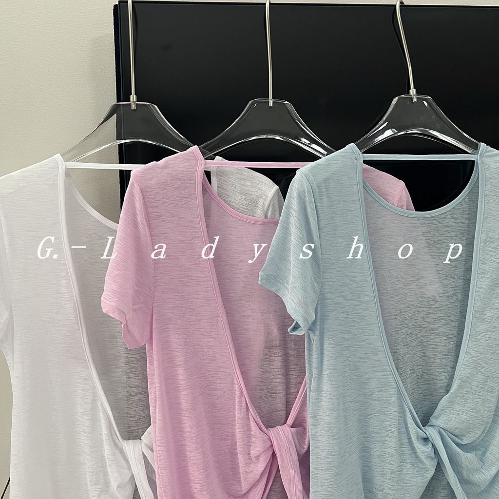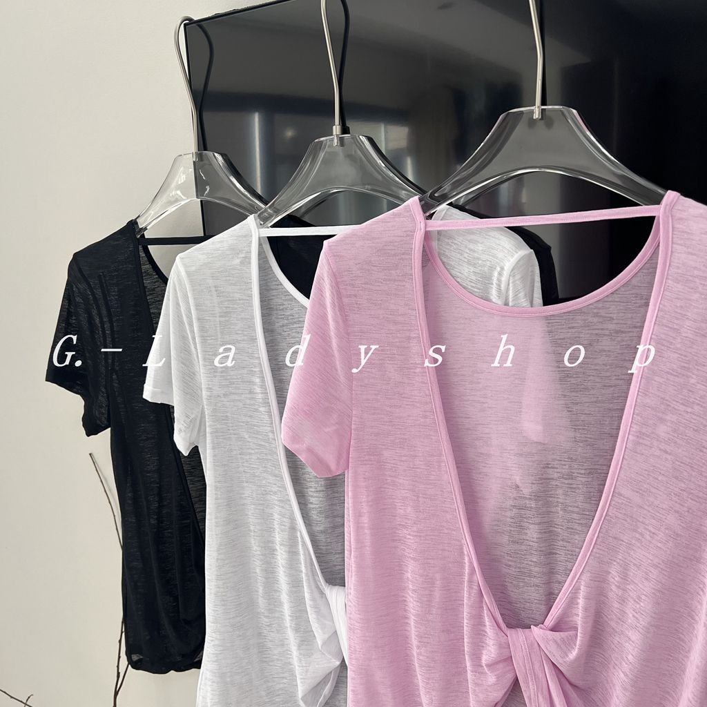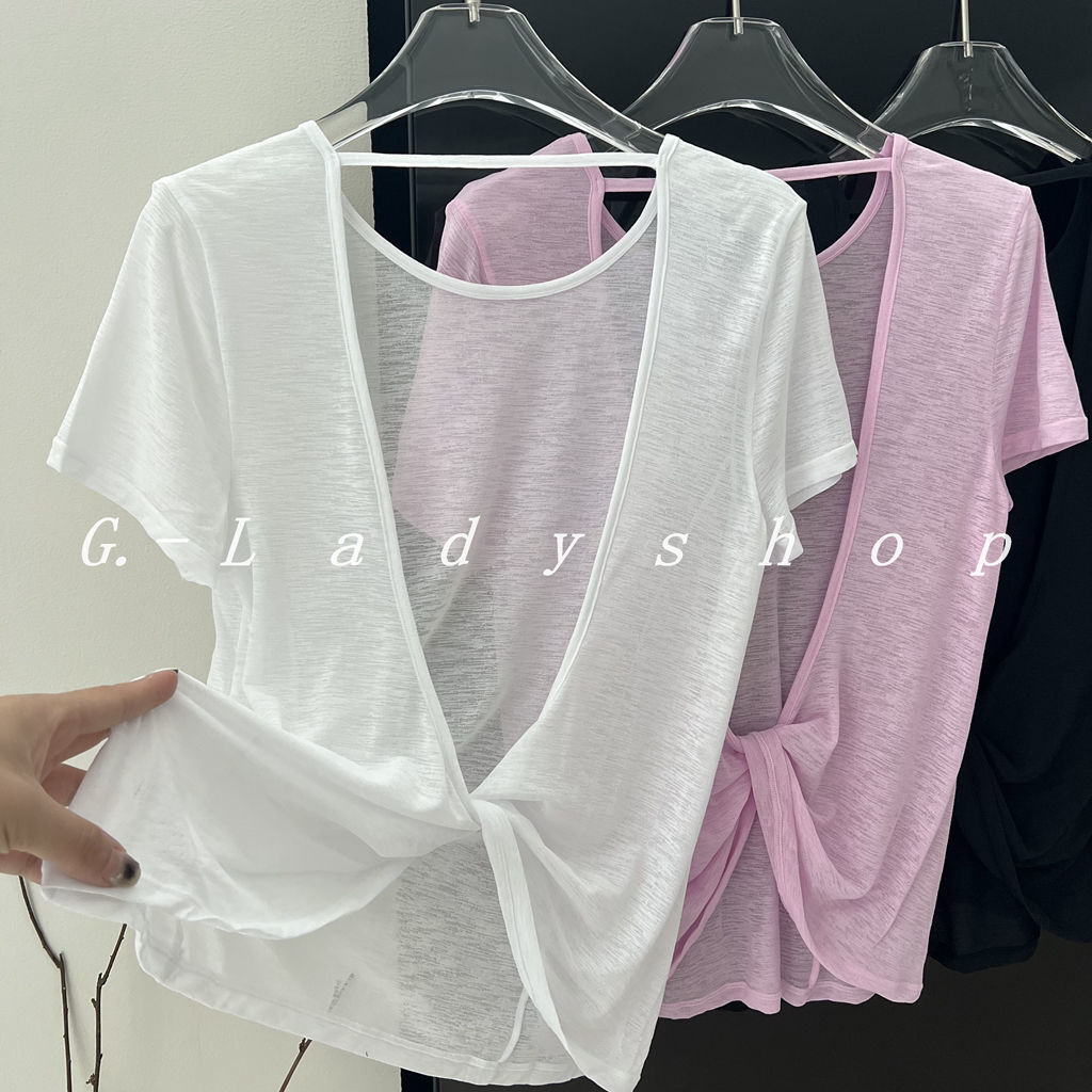 竹节纱 透气镂空透视感纱网瑜伽罩衫 防晒薄款大露背运动T恤上衣