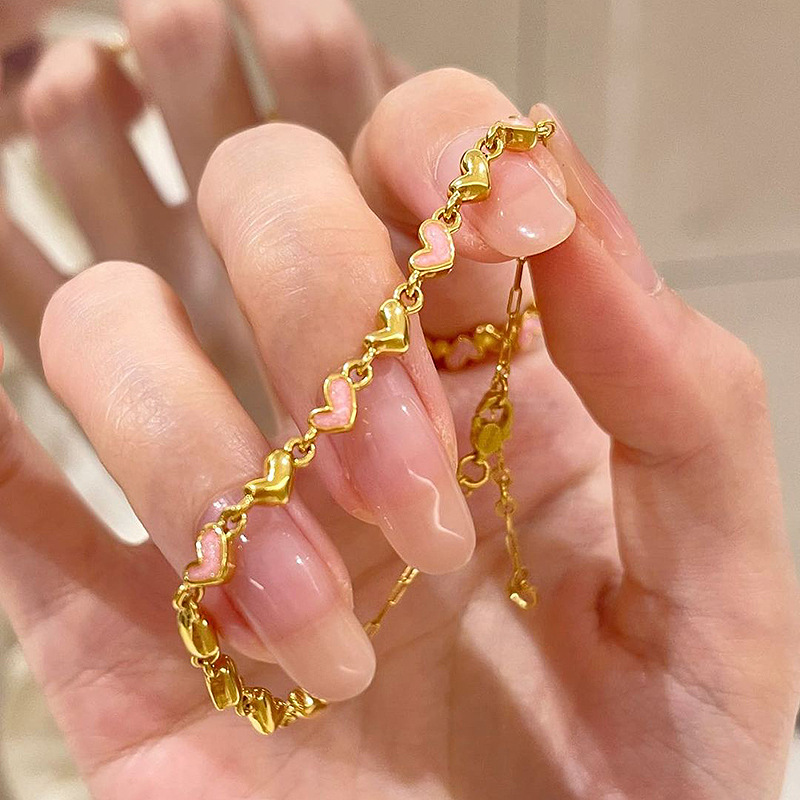 小红书爆款在逃芭比公主粉金手链超重工拉丝珐琅心形手饰一件代发