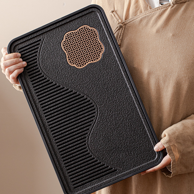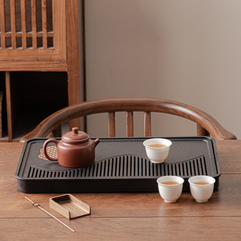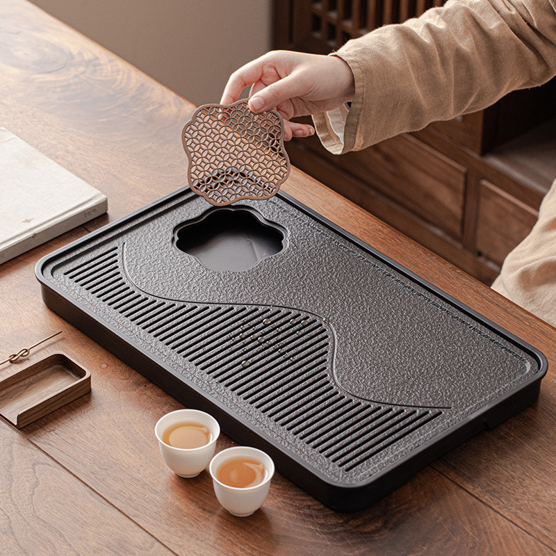 茶盘家用乌金瓷石茶具茶台储水排水式干泡台石头轻奢现代小型托盘