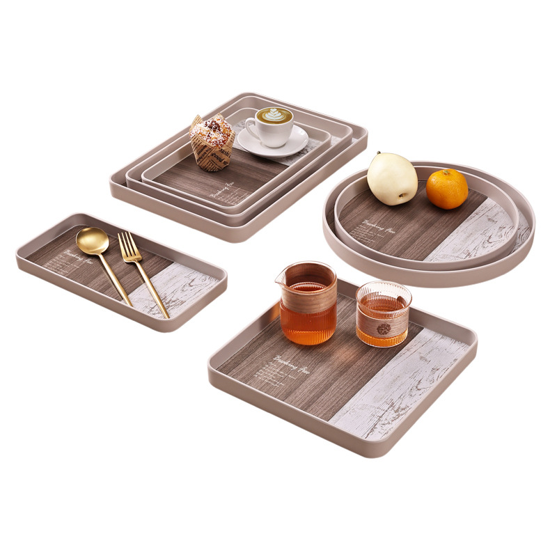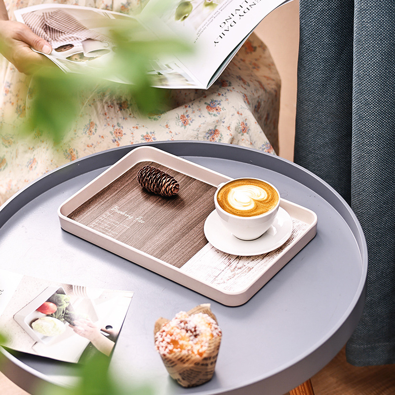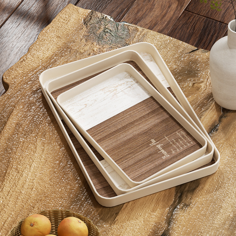 木纹托盘长方形家用茶盘水杯收纳甜品盘