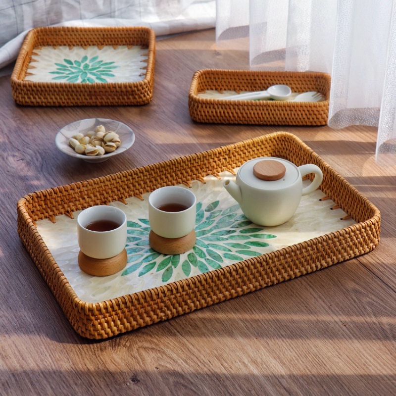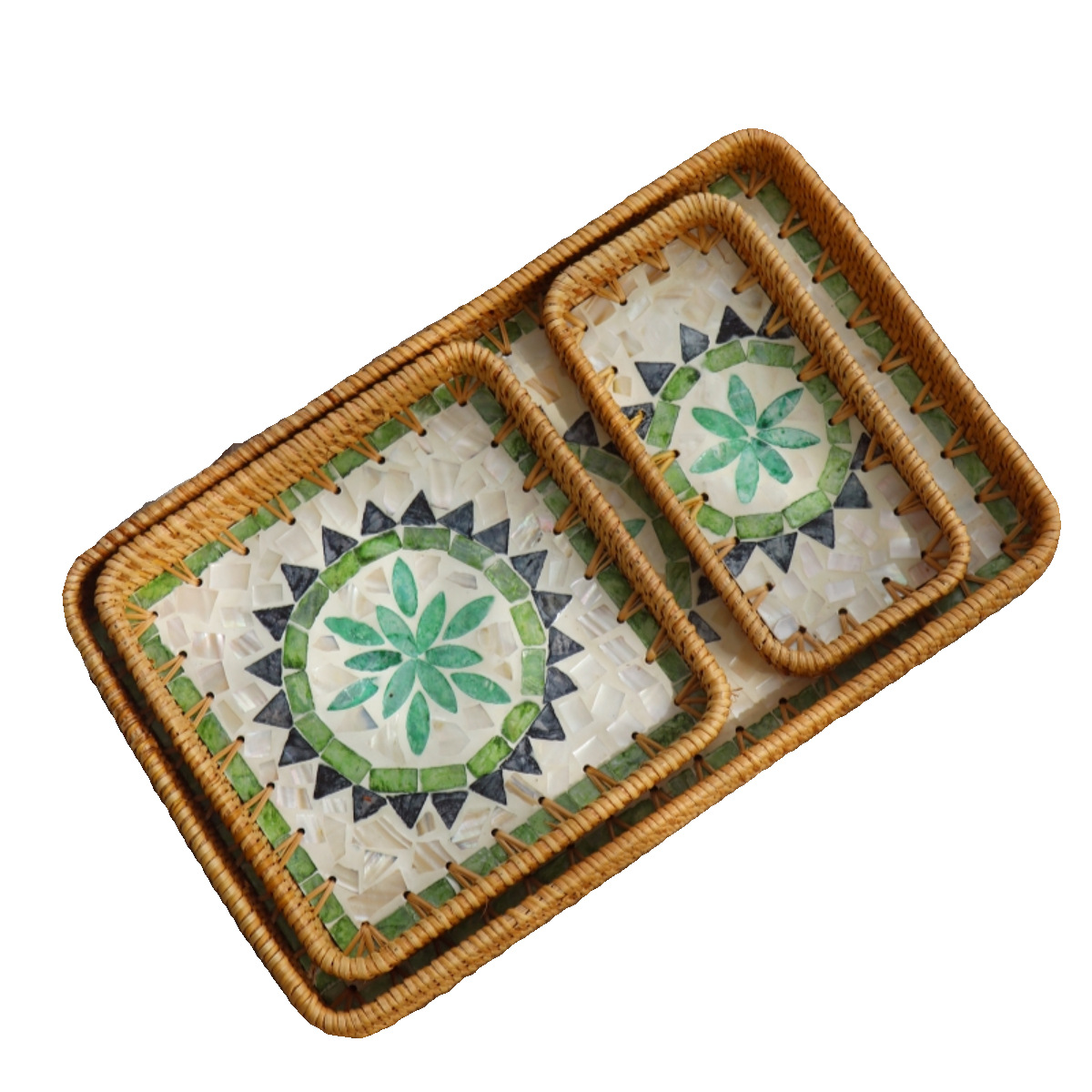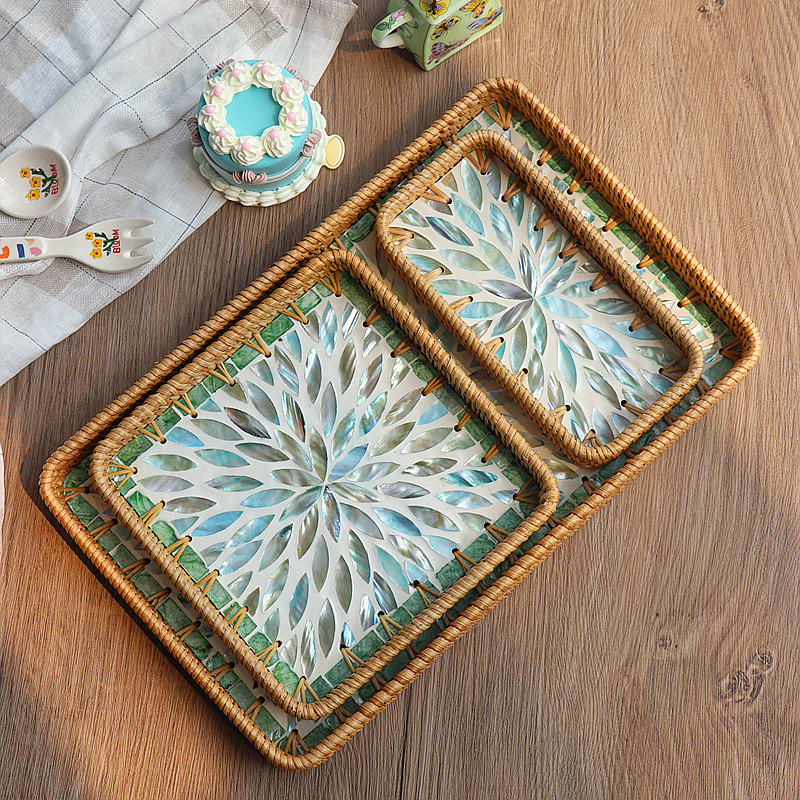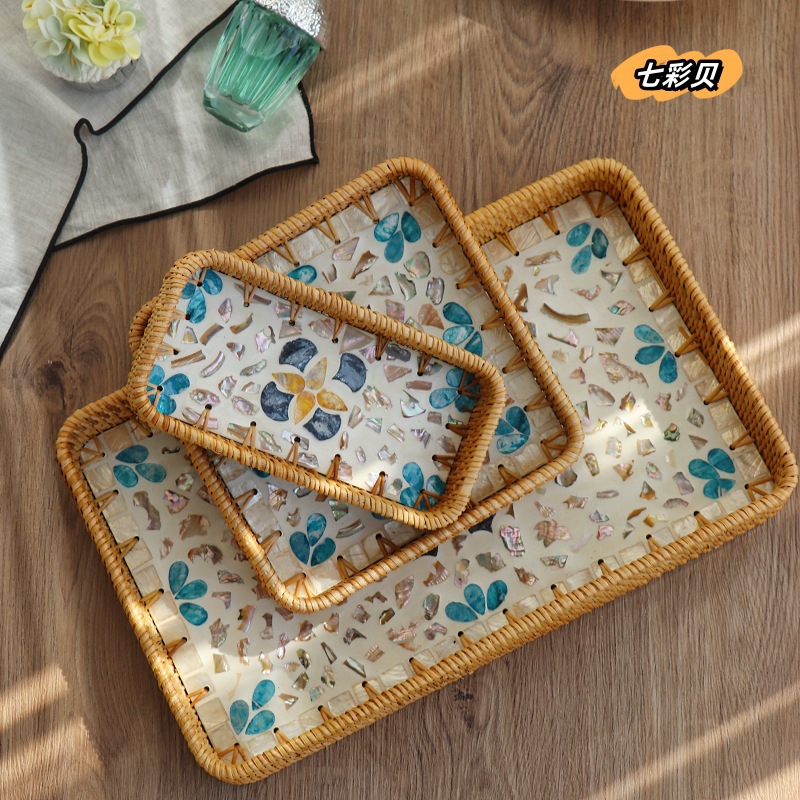 手工藤编贝壳托盘水果盘家用客厅点心收纳茶盘贝
