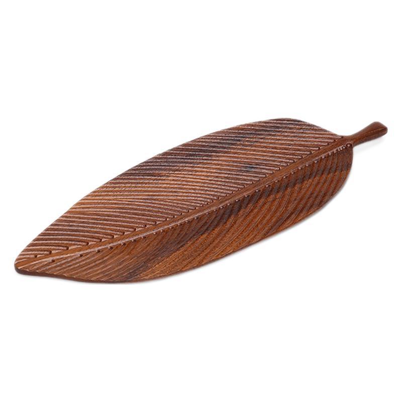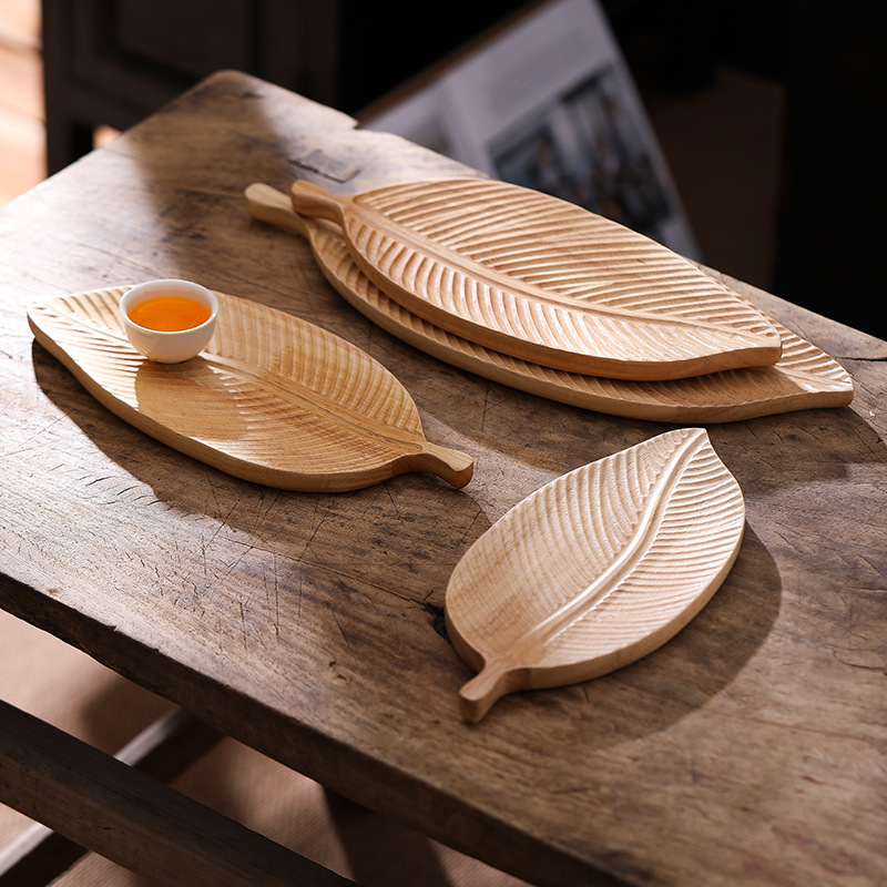 干泡茶盘中式胡桃木树叶形整木托盘实木质茶杯盘