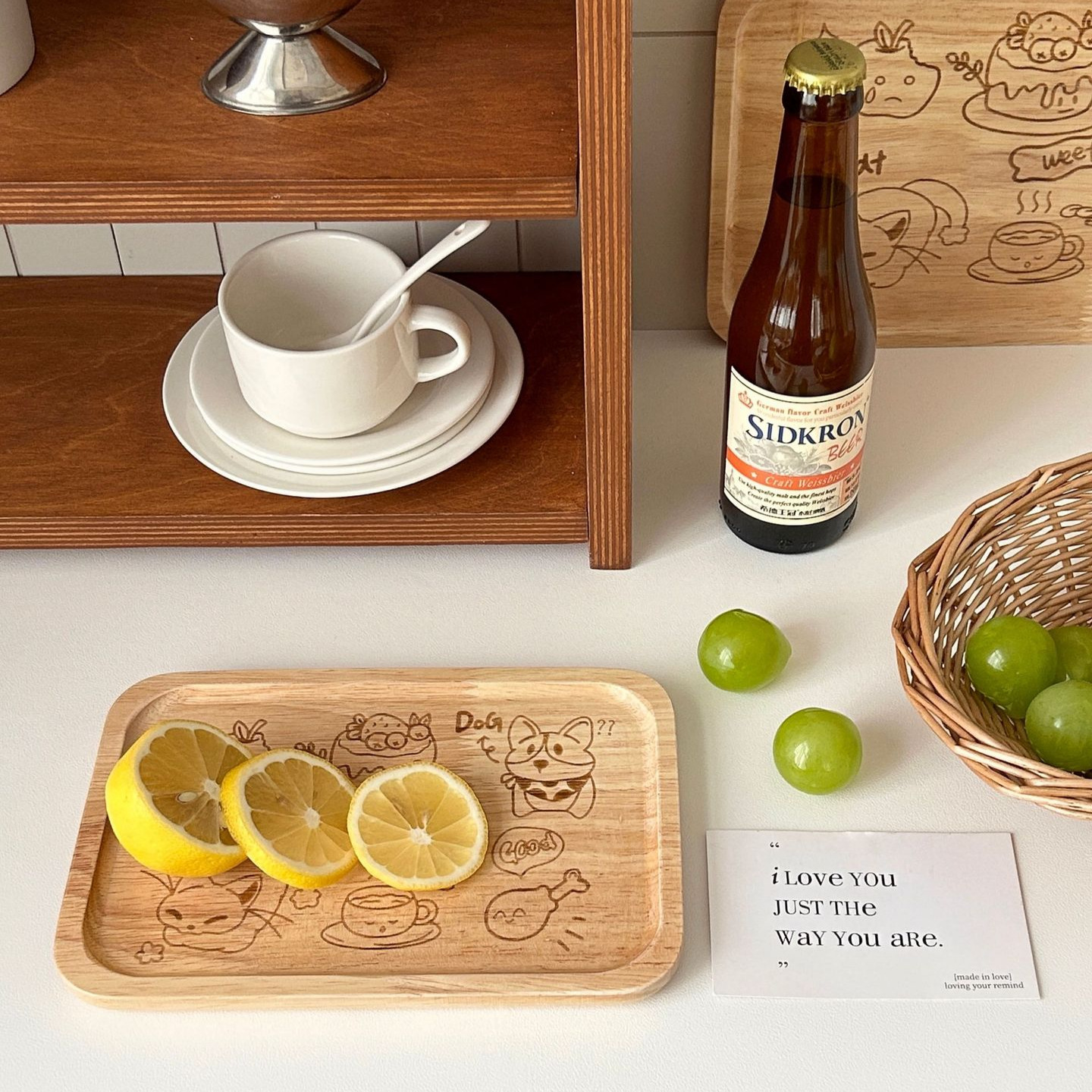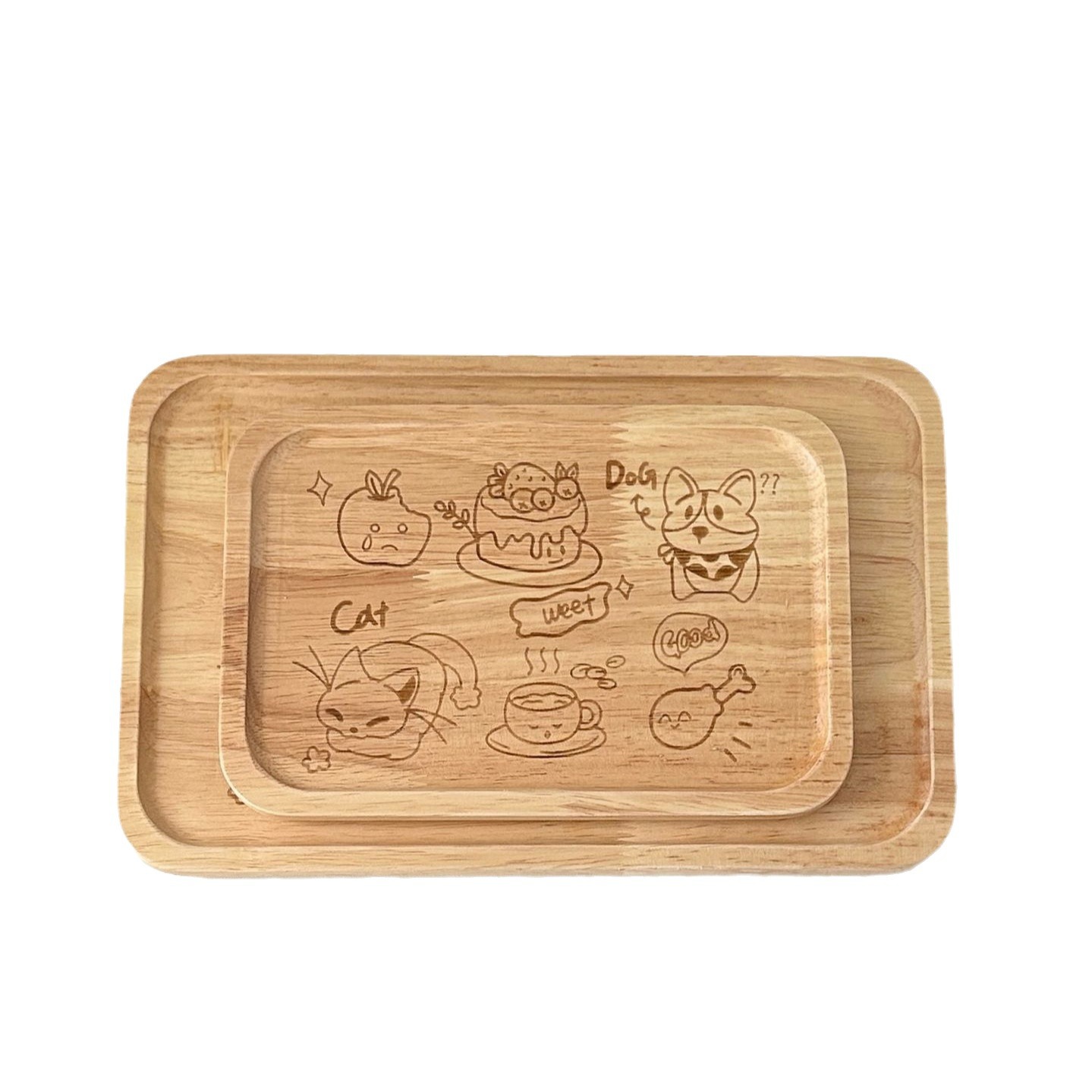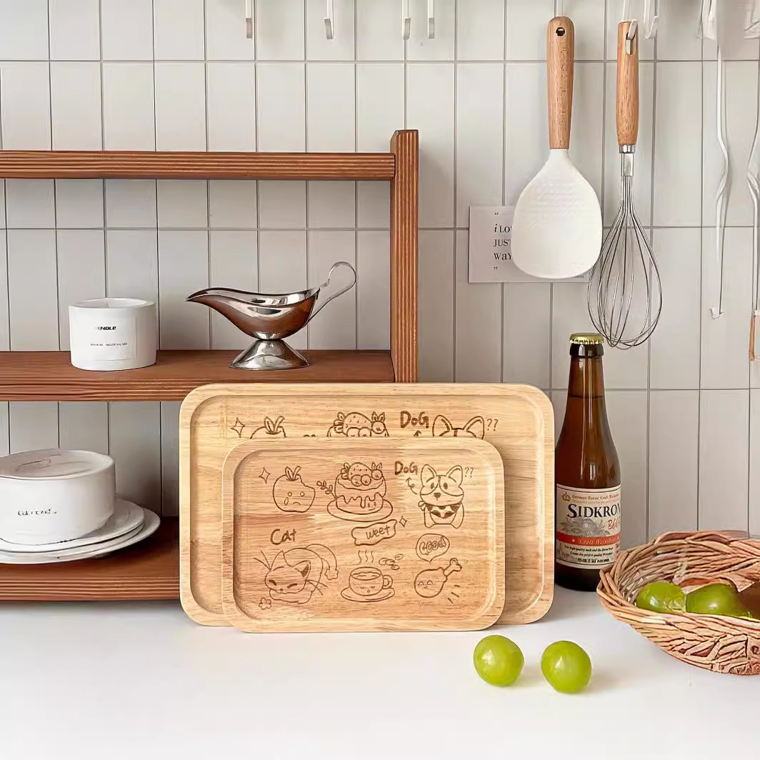 创意可爱茶具橡胶木制托盘茶盘家用水杯托盘
