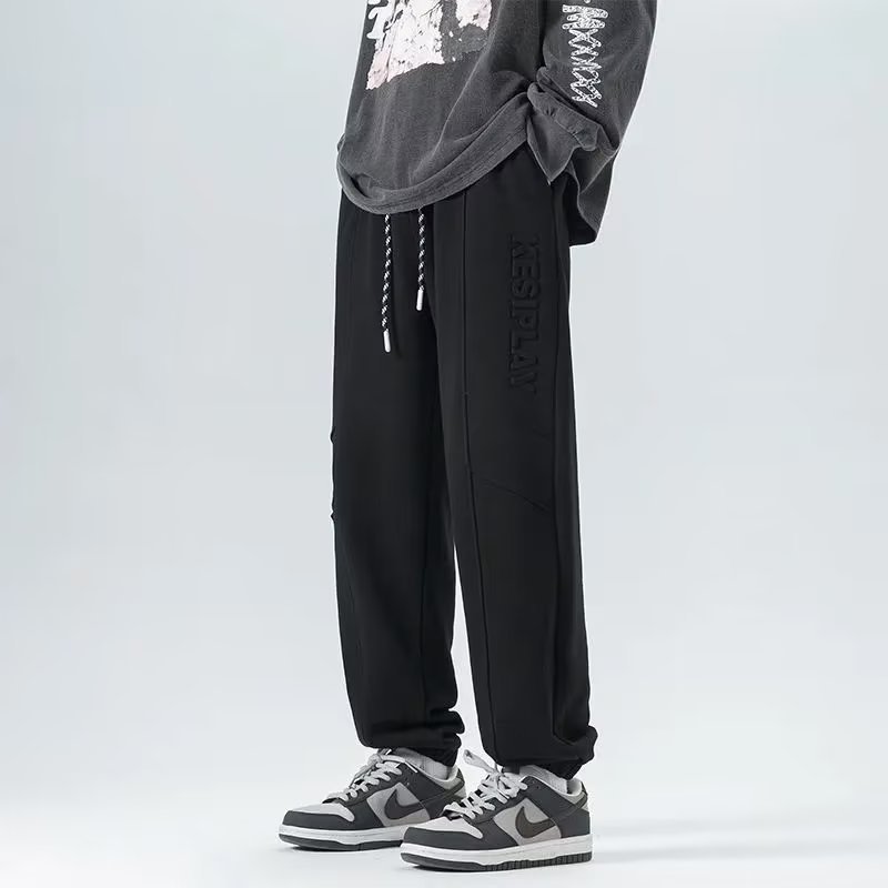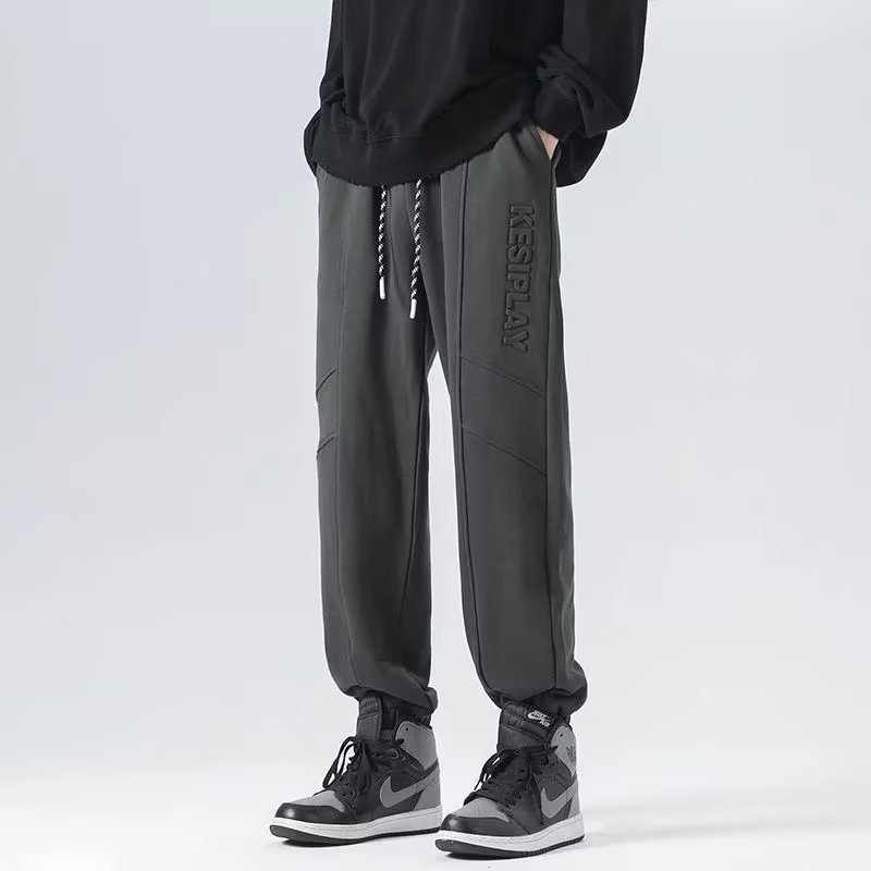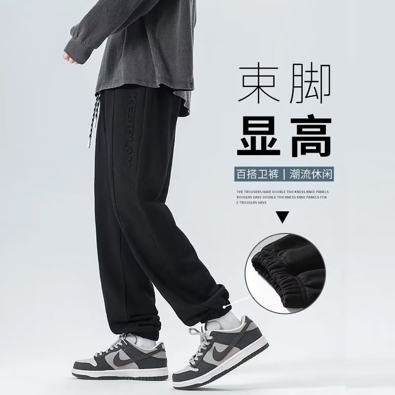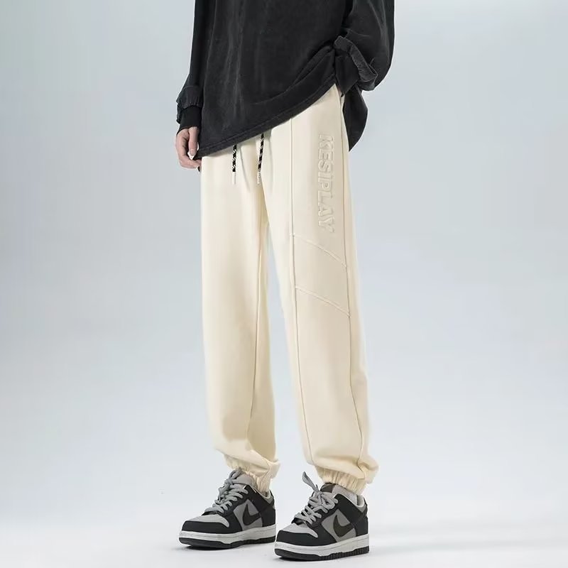 春夏新款小脚卫裤字母压花束脚休闲裤男生宽松抽绳运动裤