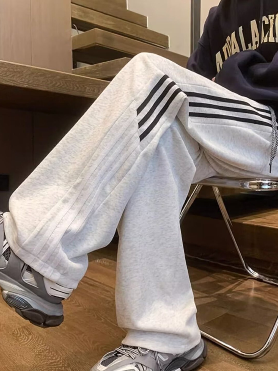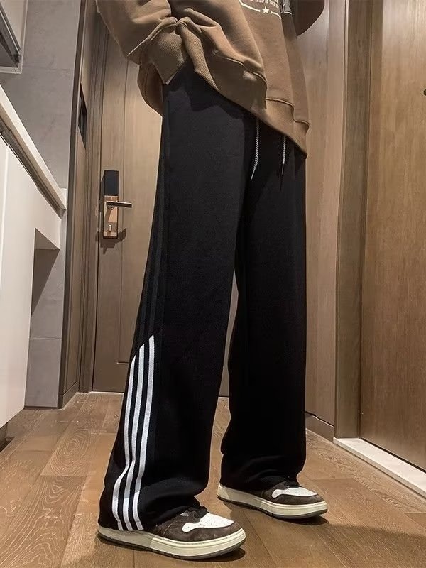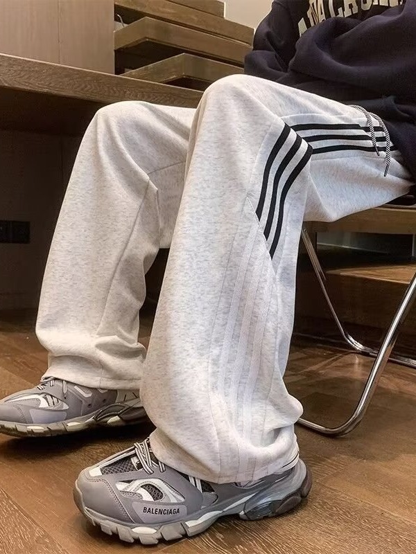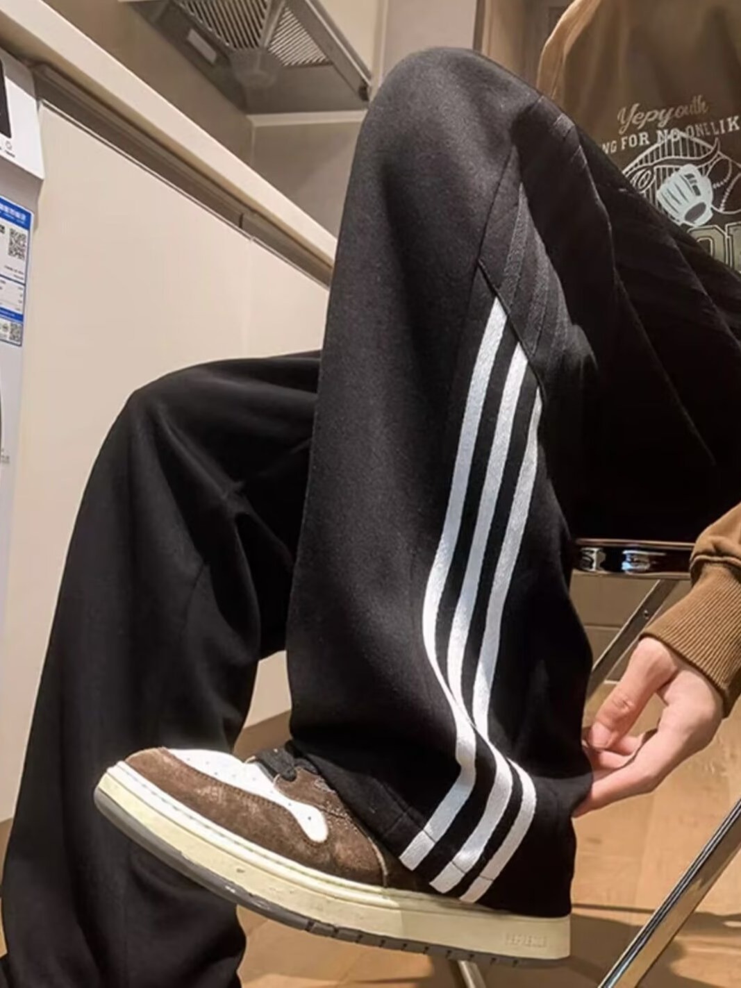 美式高街条纹大码卫裤男春秋直筒阔腿长裤宽松男生痞帅运动卫裤潮