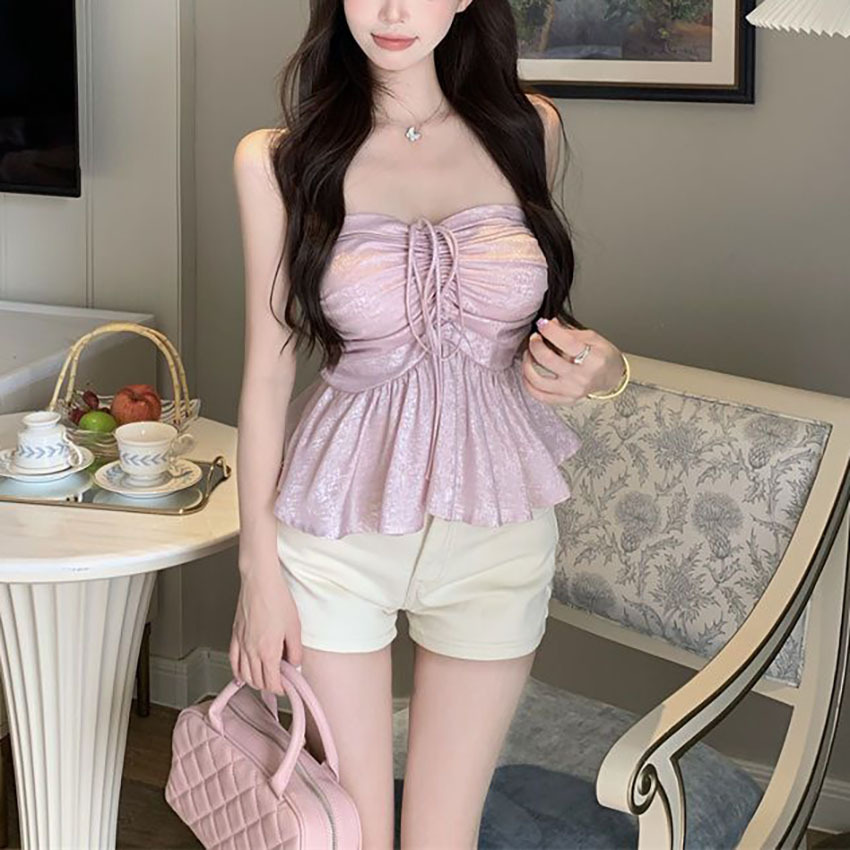【月销10万】粉色挂脖小吊带背心女外穿夏性感一字肩抹胸上衣泰式