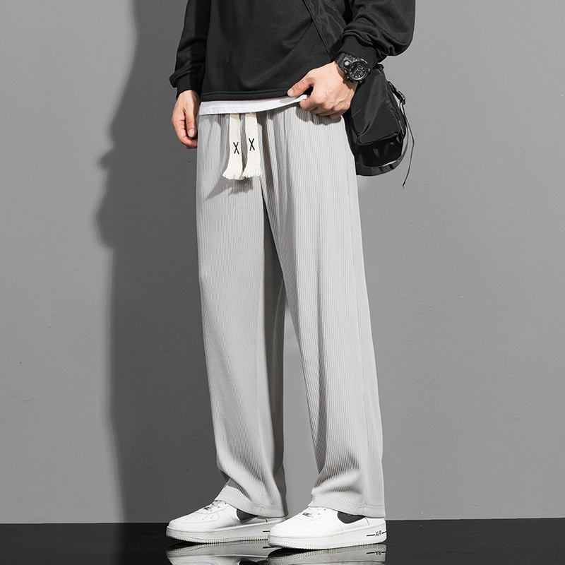 冰丝裤子男夏季薄款宽松弹力垂感直筒卫裤男生阔腿运动休闲长裤