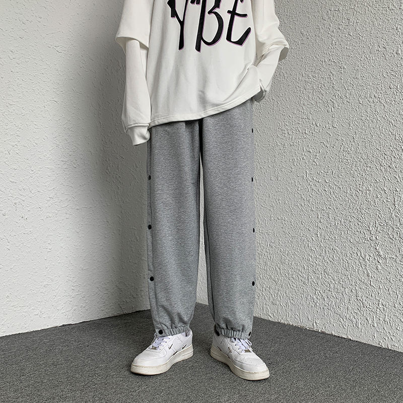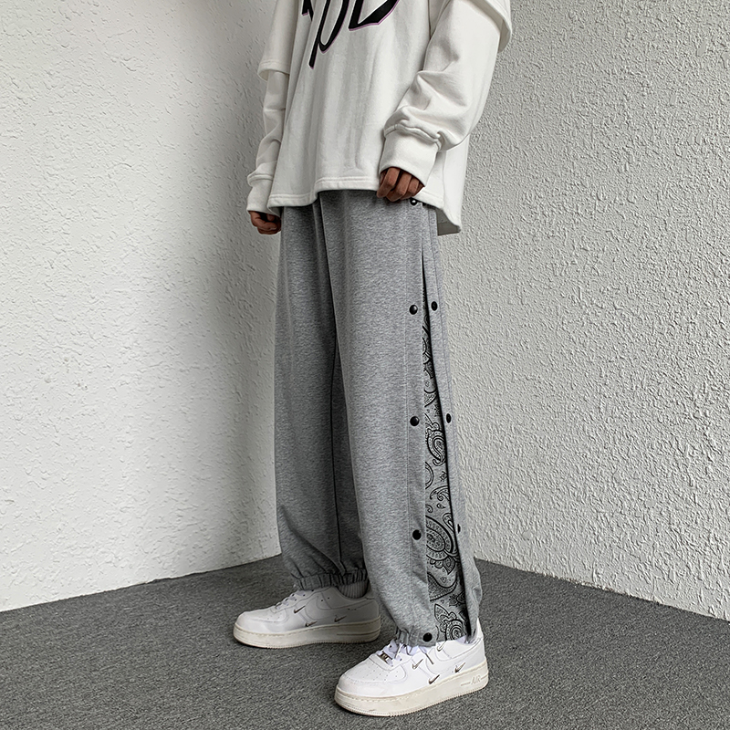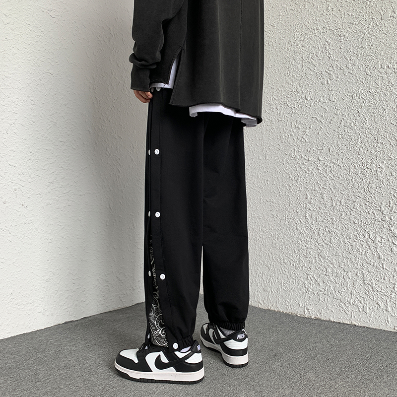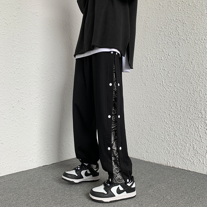 夏季新款侧边腰果花排扣工装裤男生ins潮篮球运动裤休闲哈伦卫裤