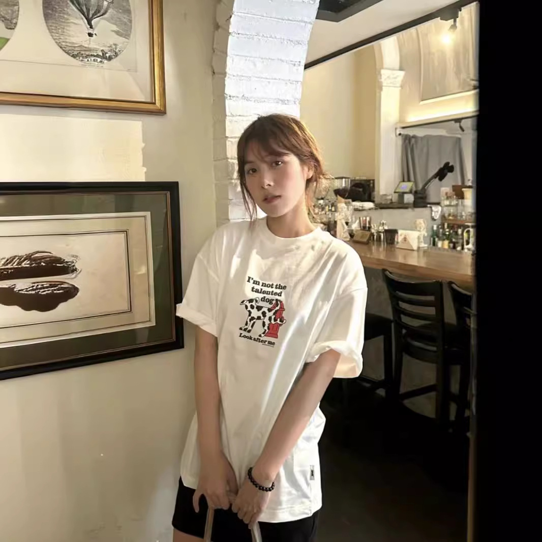 韩版趣味小狗印花短袖t恤女夏季新款宽松百搭休闲纯棉半袖上衣潮