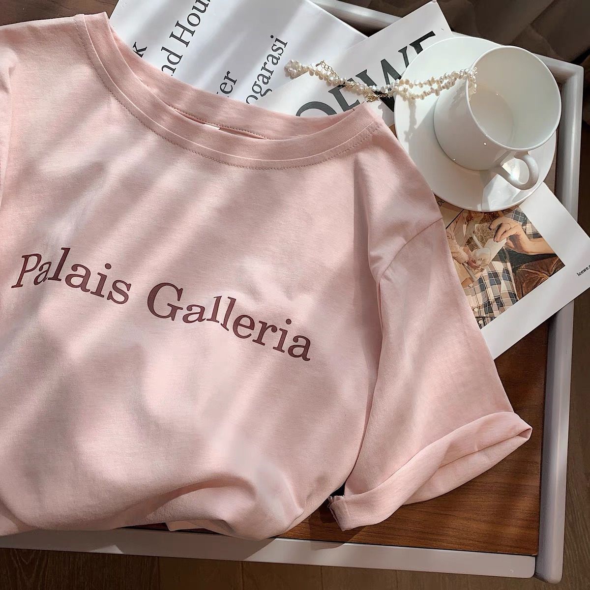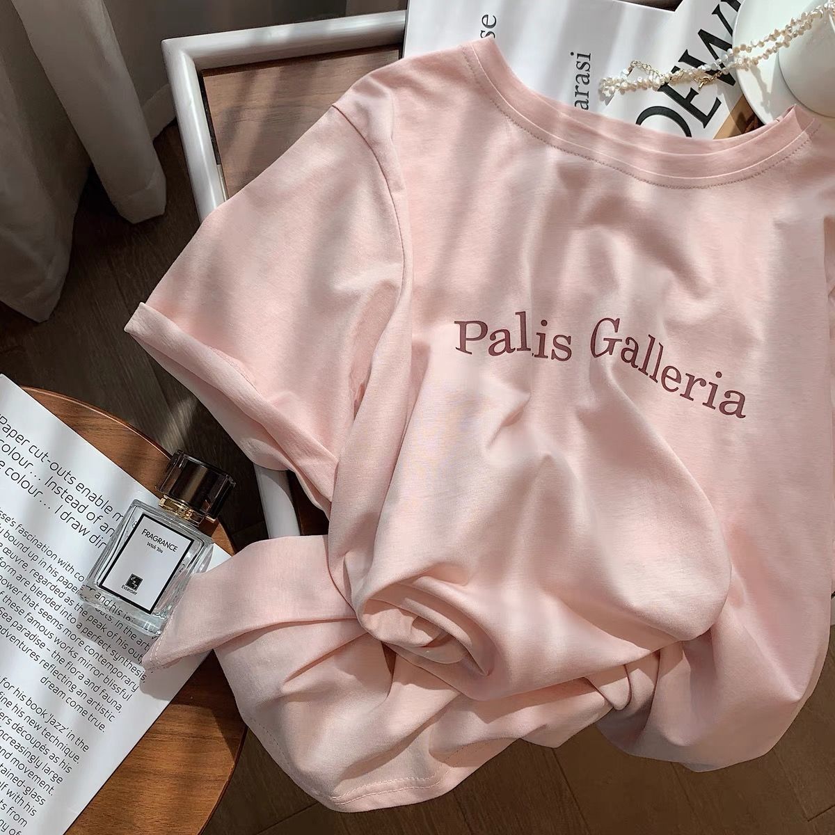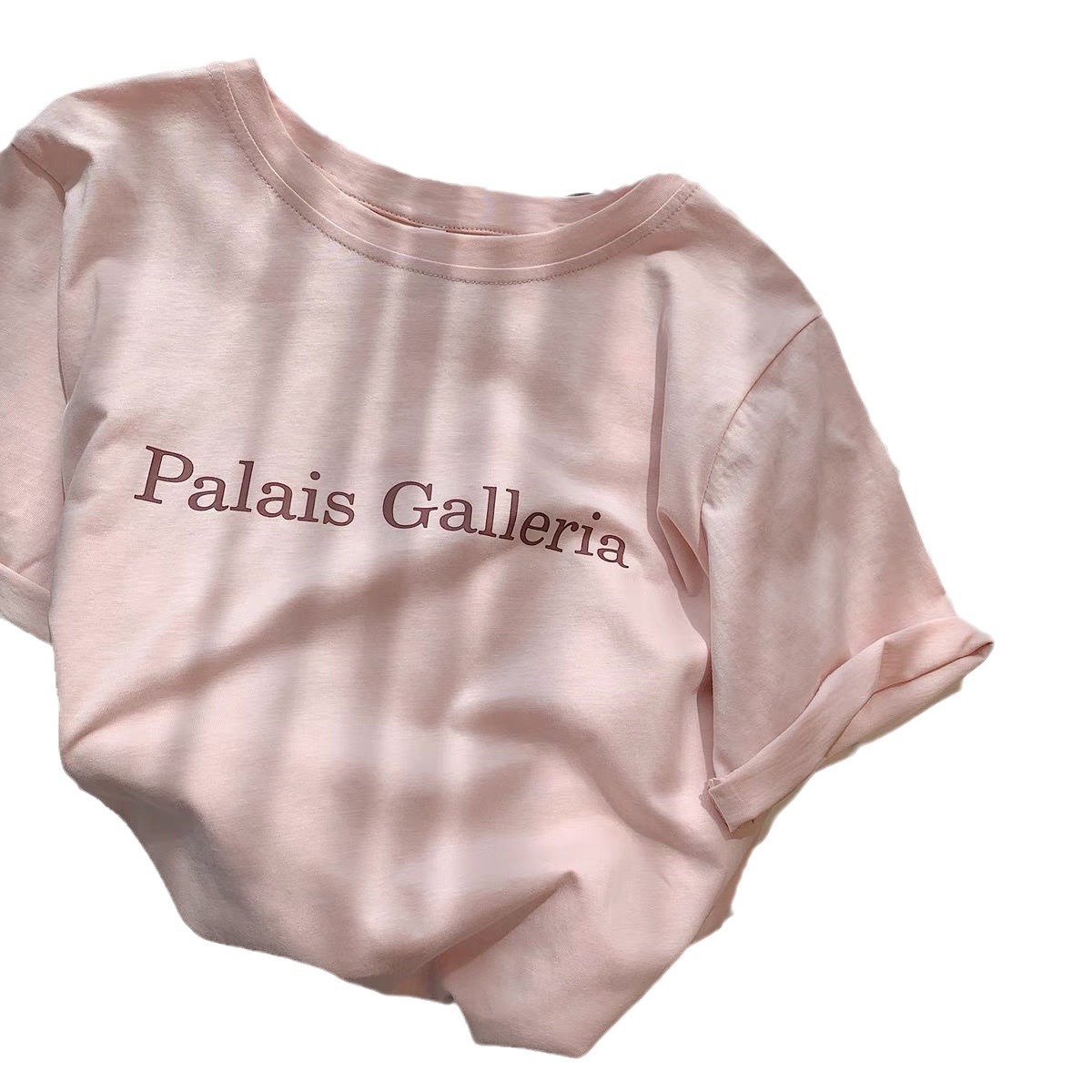 粉色字母简约莫代尔短袖t恤女夏新款韩版宽松百搭甜美体恤潮