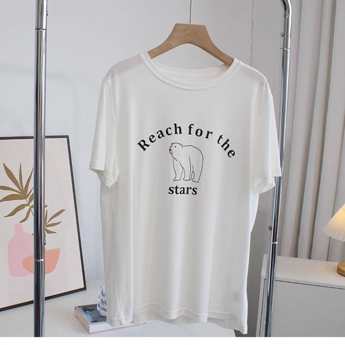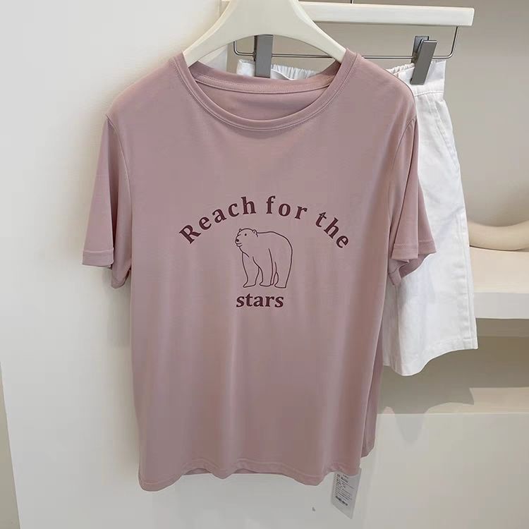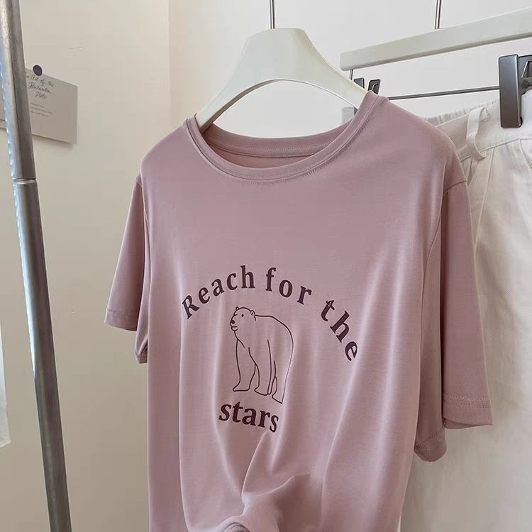 垂感显瘦莫代尔宽松T恤显白字母印花圆领薄款凉爽百搭短袖上衣女