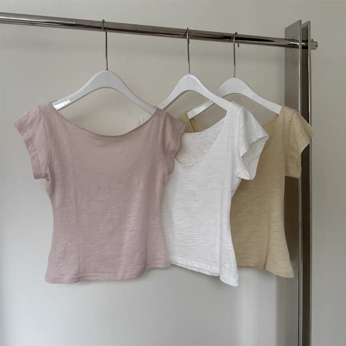 欧货一字领斜肩T恤女夏季新款辣妹风露肩上衣设计感独特短袖