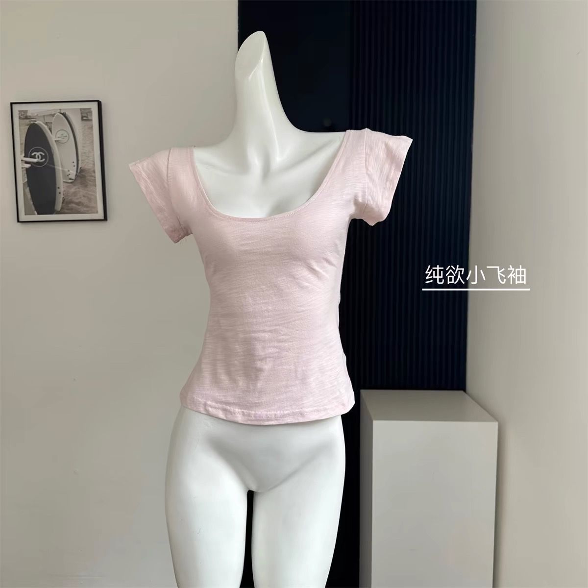 纯欲性感辣妹短袖T恤女夏季新款修身收腰竹节棉小个子v领短款上衣