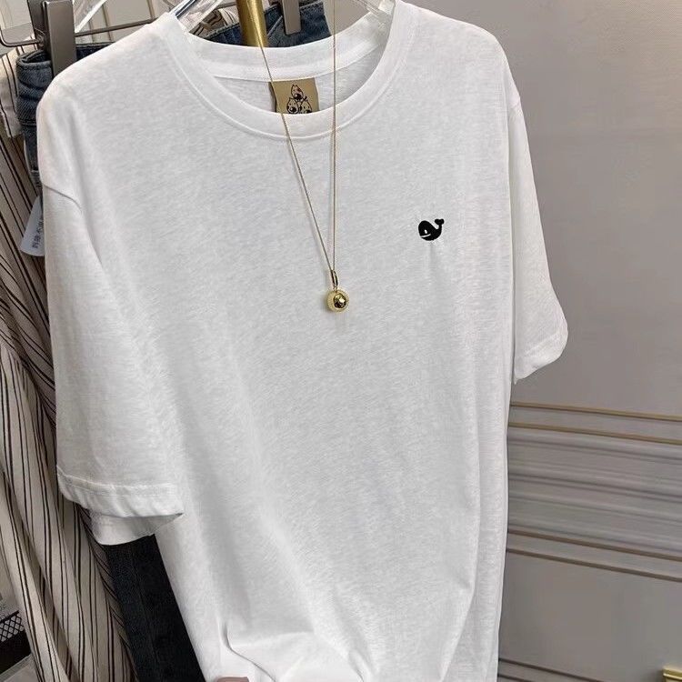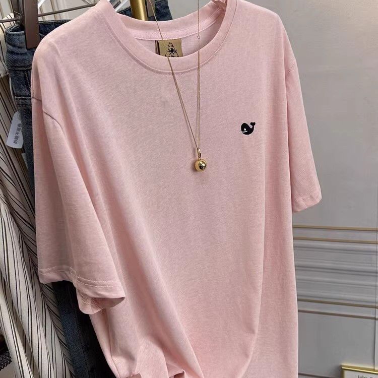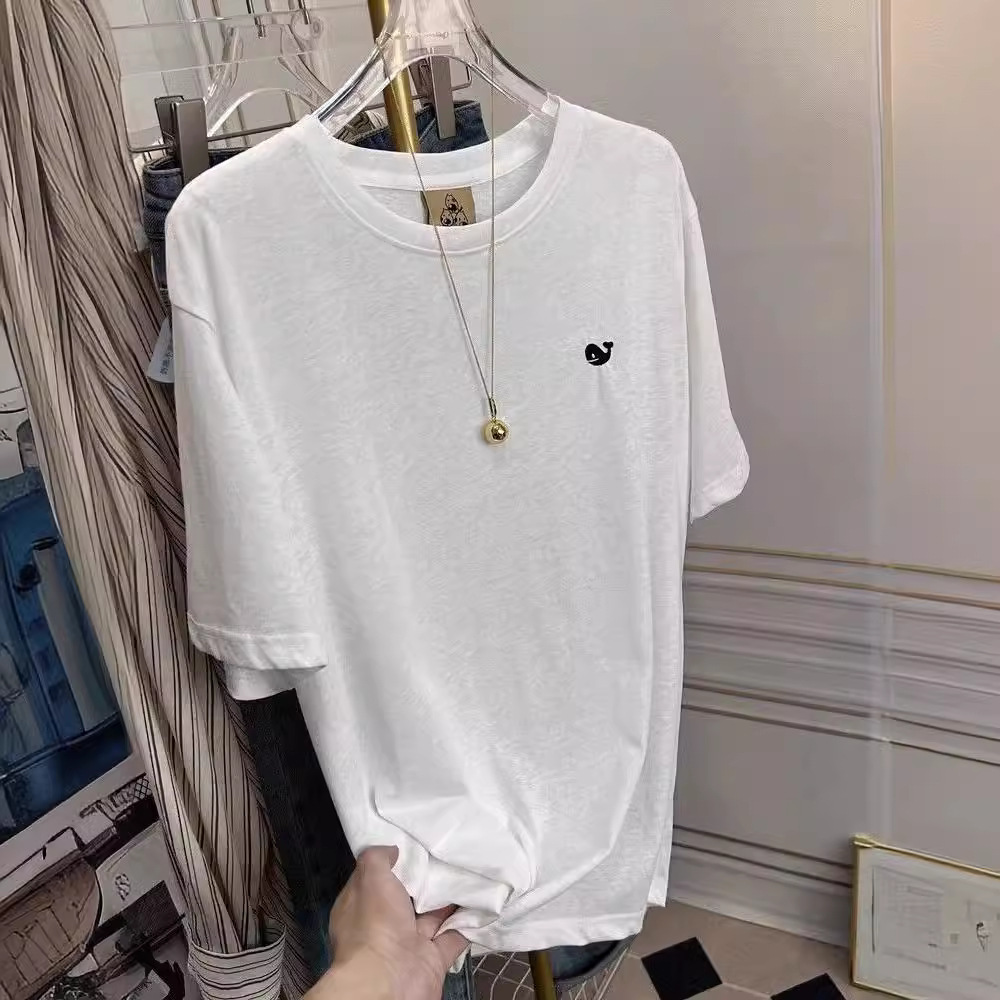 高档柔软清凉刺绣图案短袖T恤上衣女新款宽松百搭休闲半袖潮