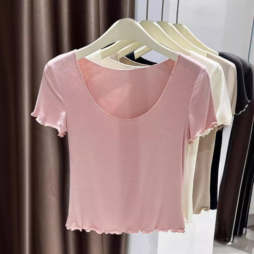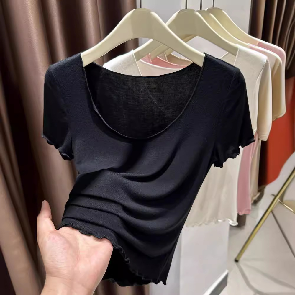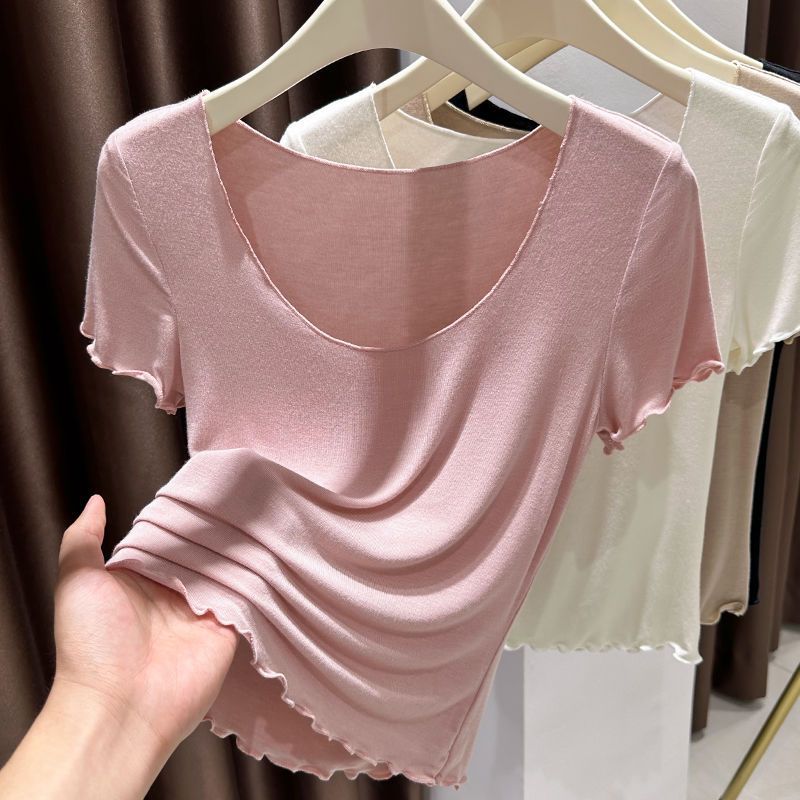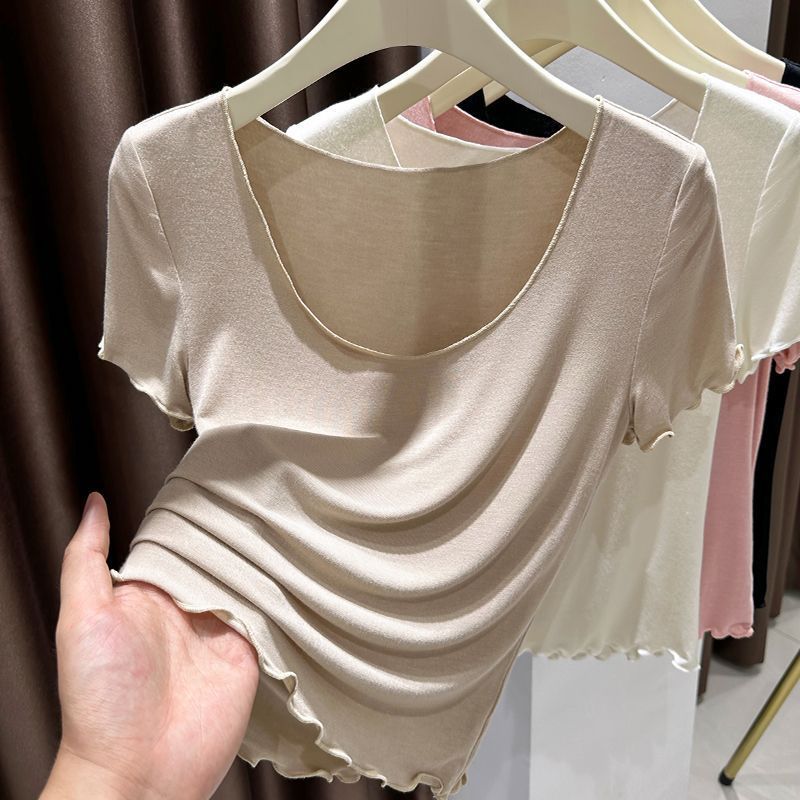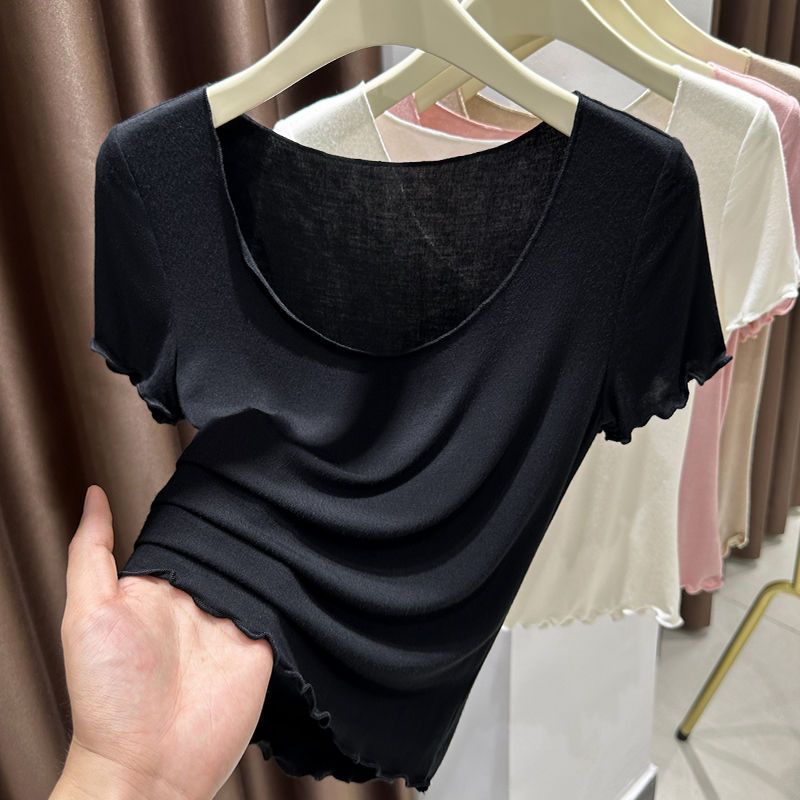 莫代尔薄款短袖t恤女夏季超弹皮肤衣冰丝圆领内搭打底衫上衣