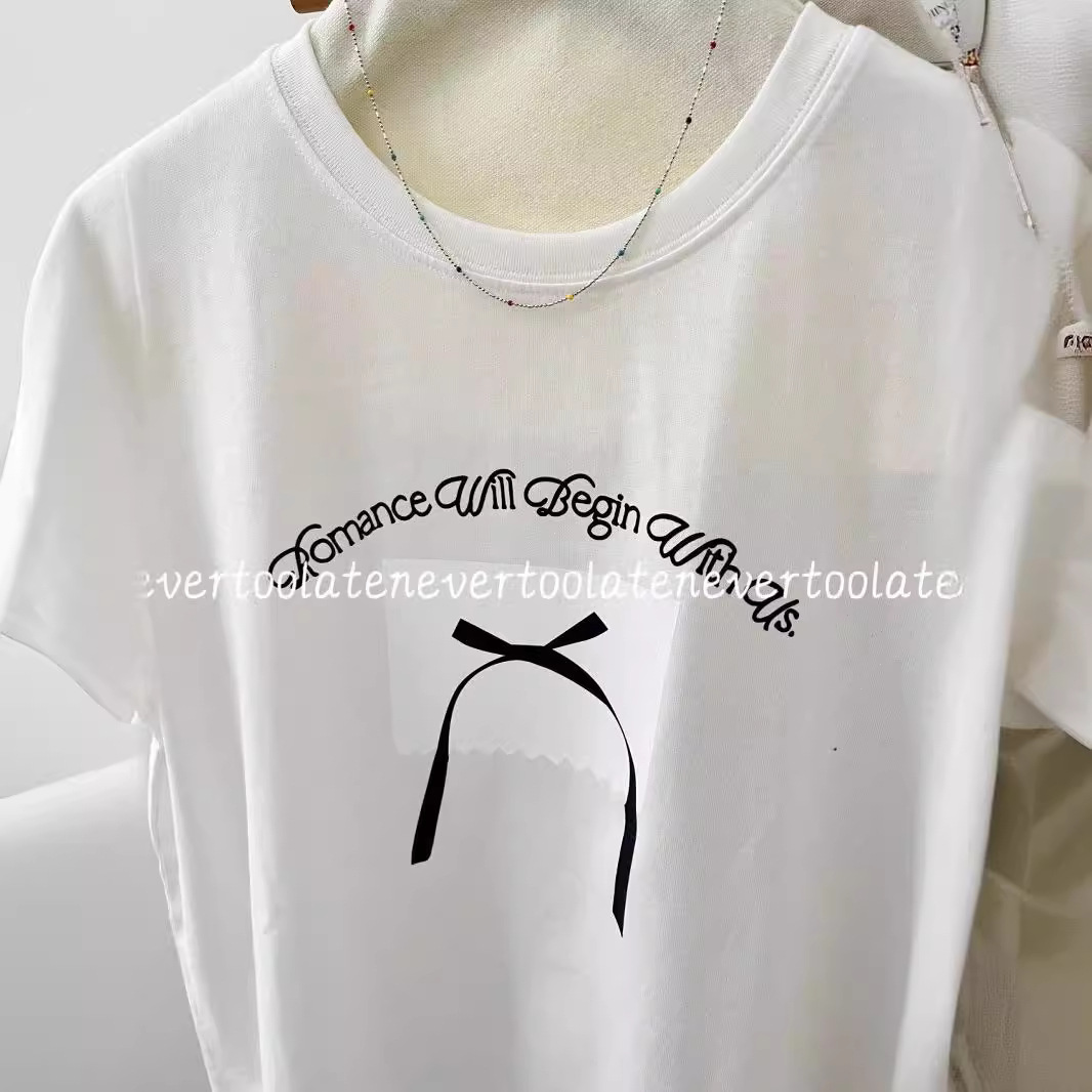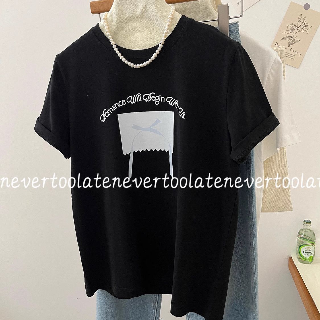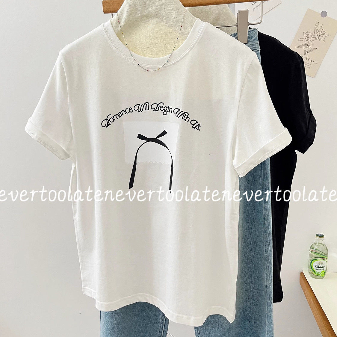 夏季十三行韩系小清新蝴蝶结印花百搭上衣新款正肩莫代尔短袖T恤