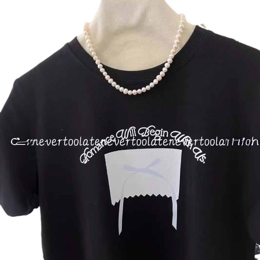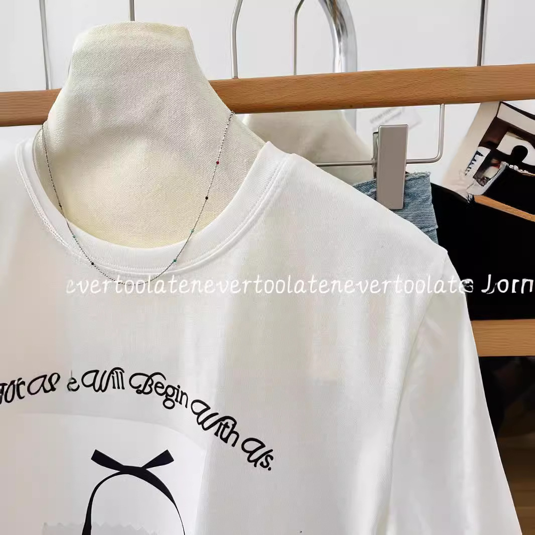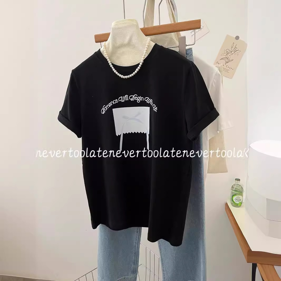 夏季十三行韩系小清新蝴蝶结印花百搭上衣新款正肩莫代尔短袖T恤