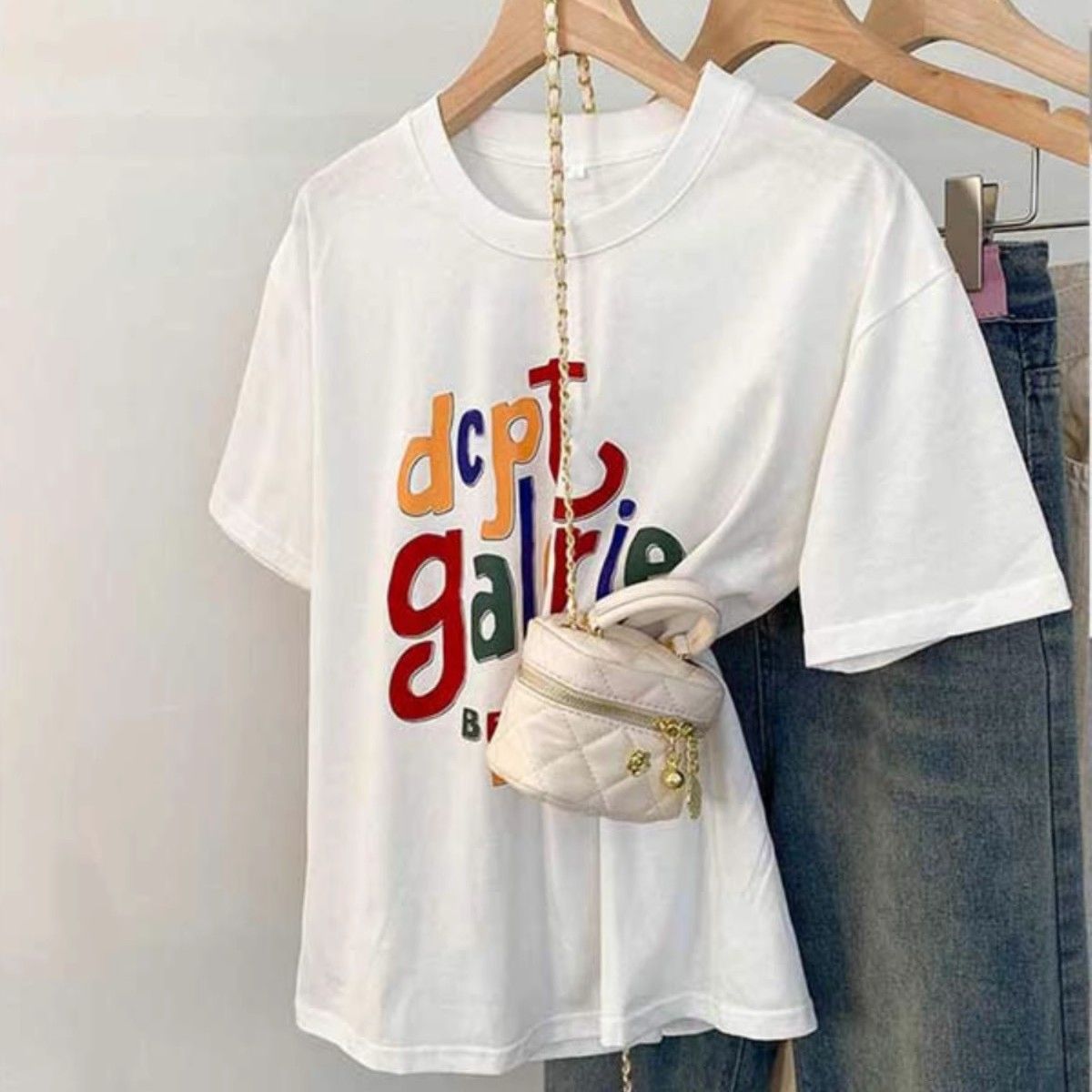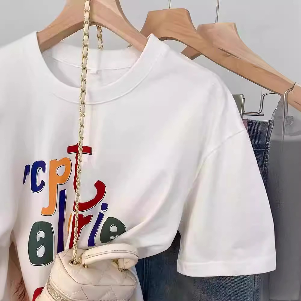 白色字母印花莫代尔t恤女夏季夏设计感小众短袖小个子美式上衣潮