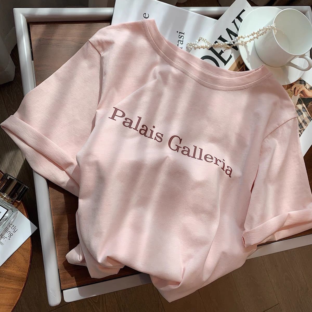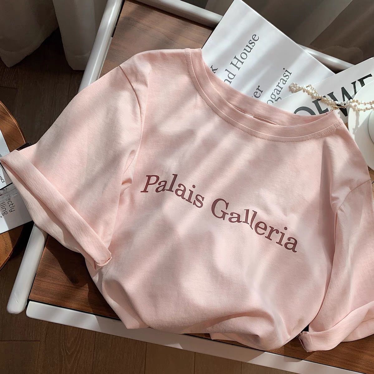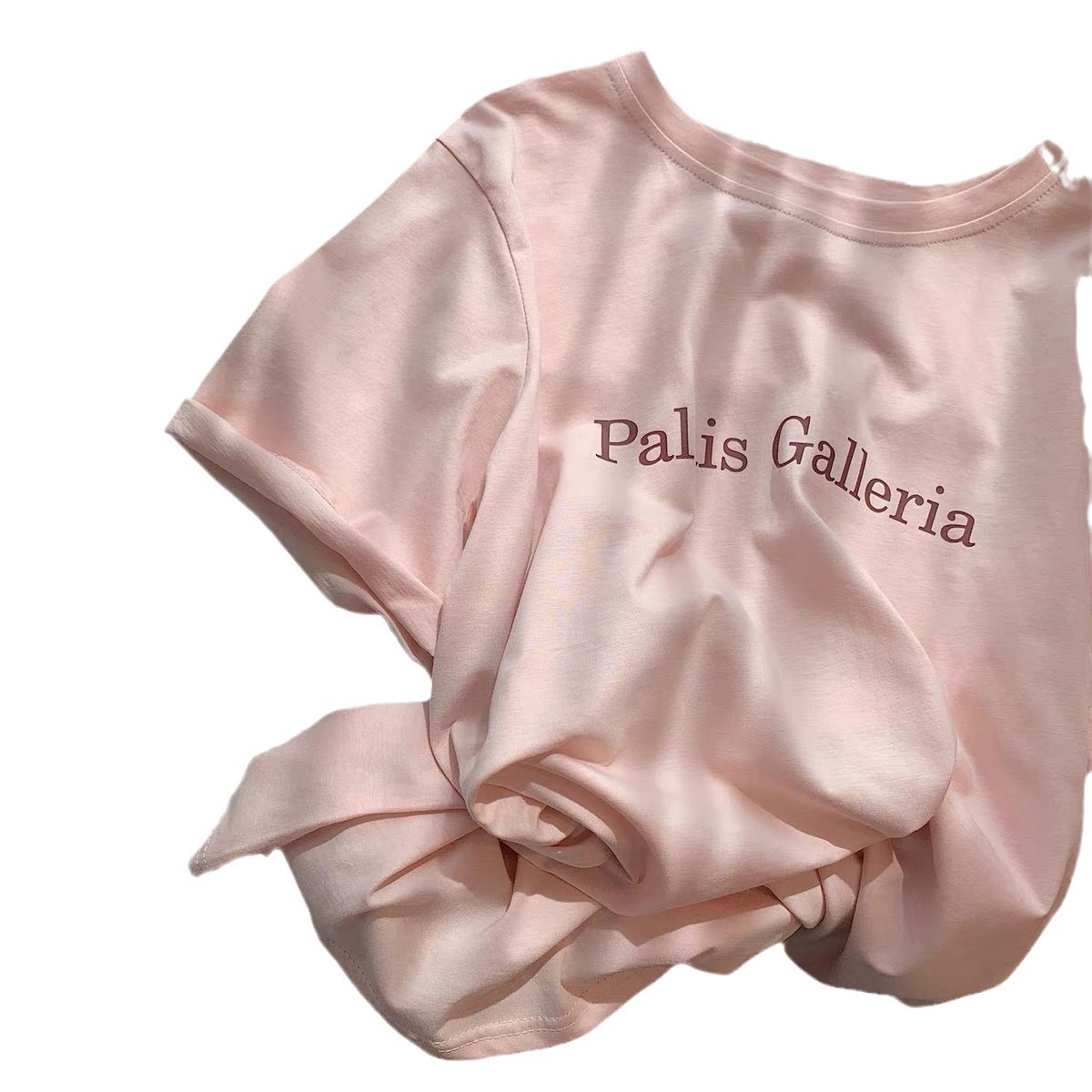 粉色字母简约莫代尔短袖t恤女夏季新款韩版宽松气质百搭甜美体恤