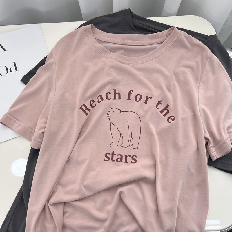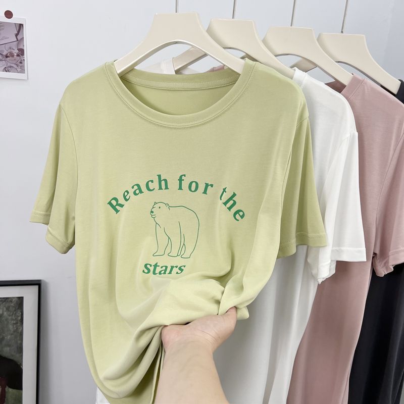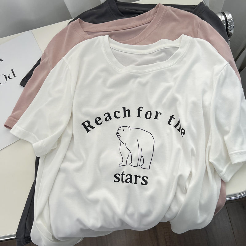 垂感显瘦莫代尔宽松T恤显白字母印花圆领薄款凉爽百搭短袖上衣女