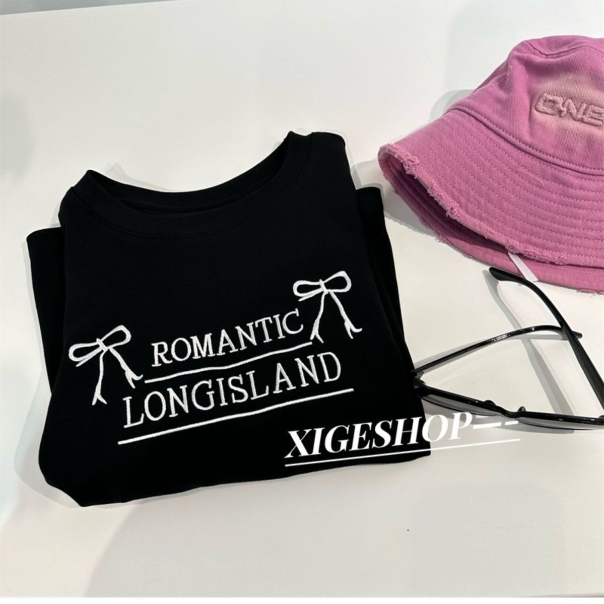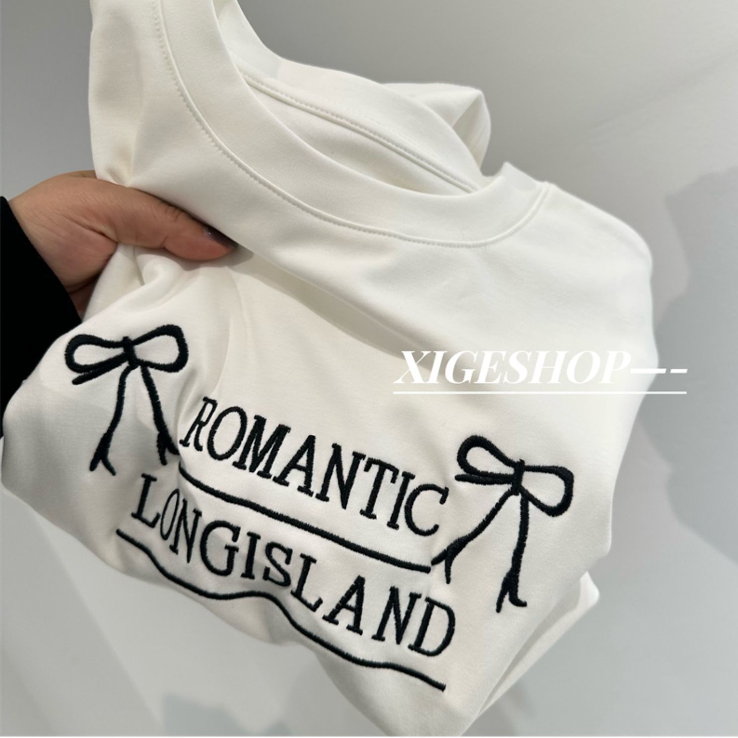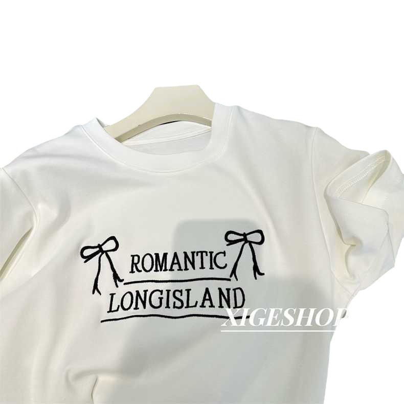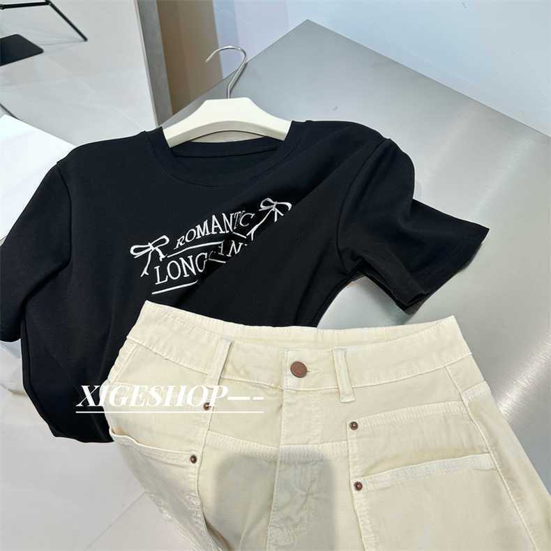 重工刺绣字母蝴蝶结莫代尔短袖T恤女夏季百搭宽松圆领套头上衣潮