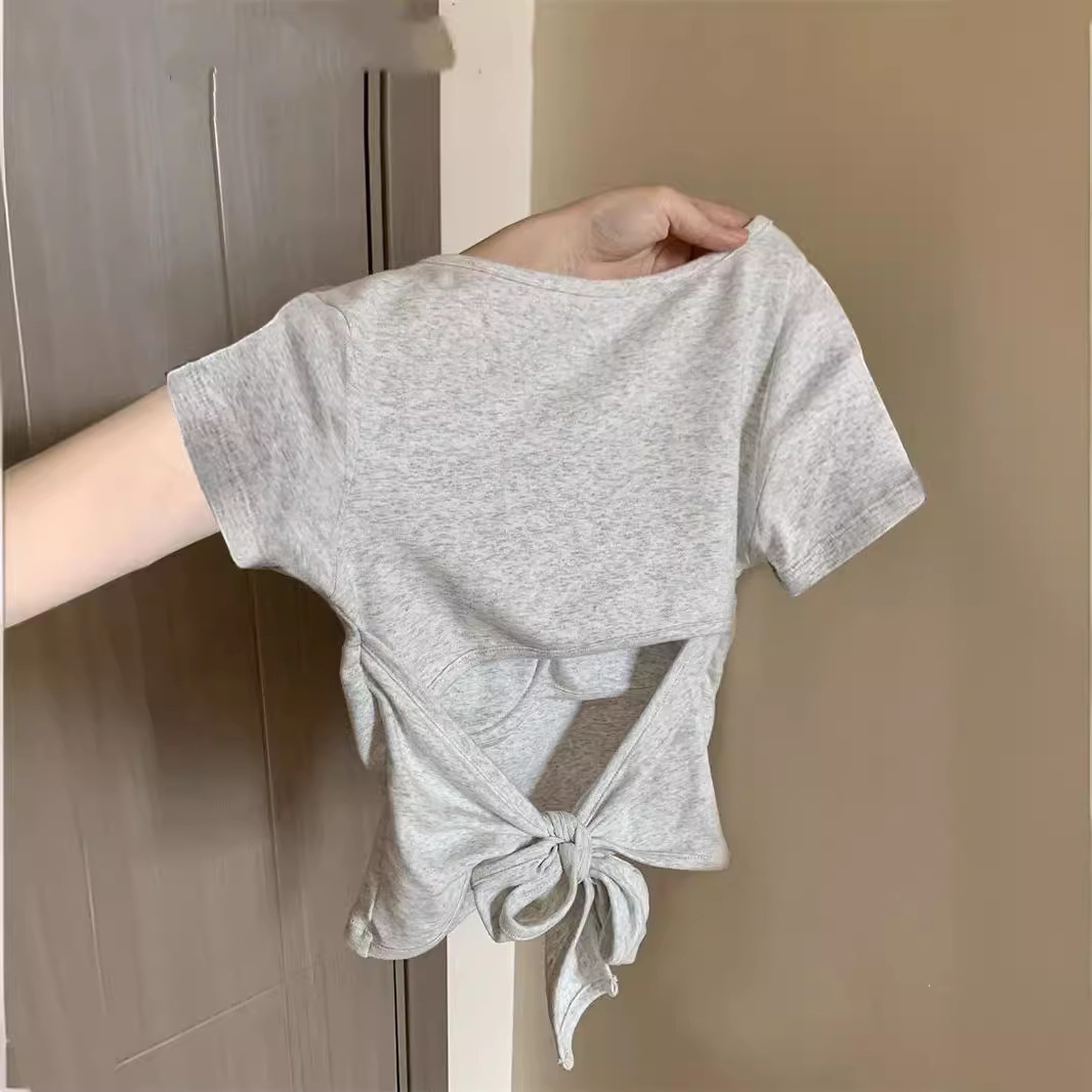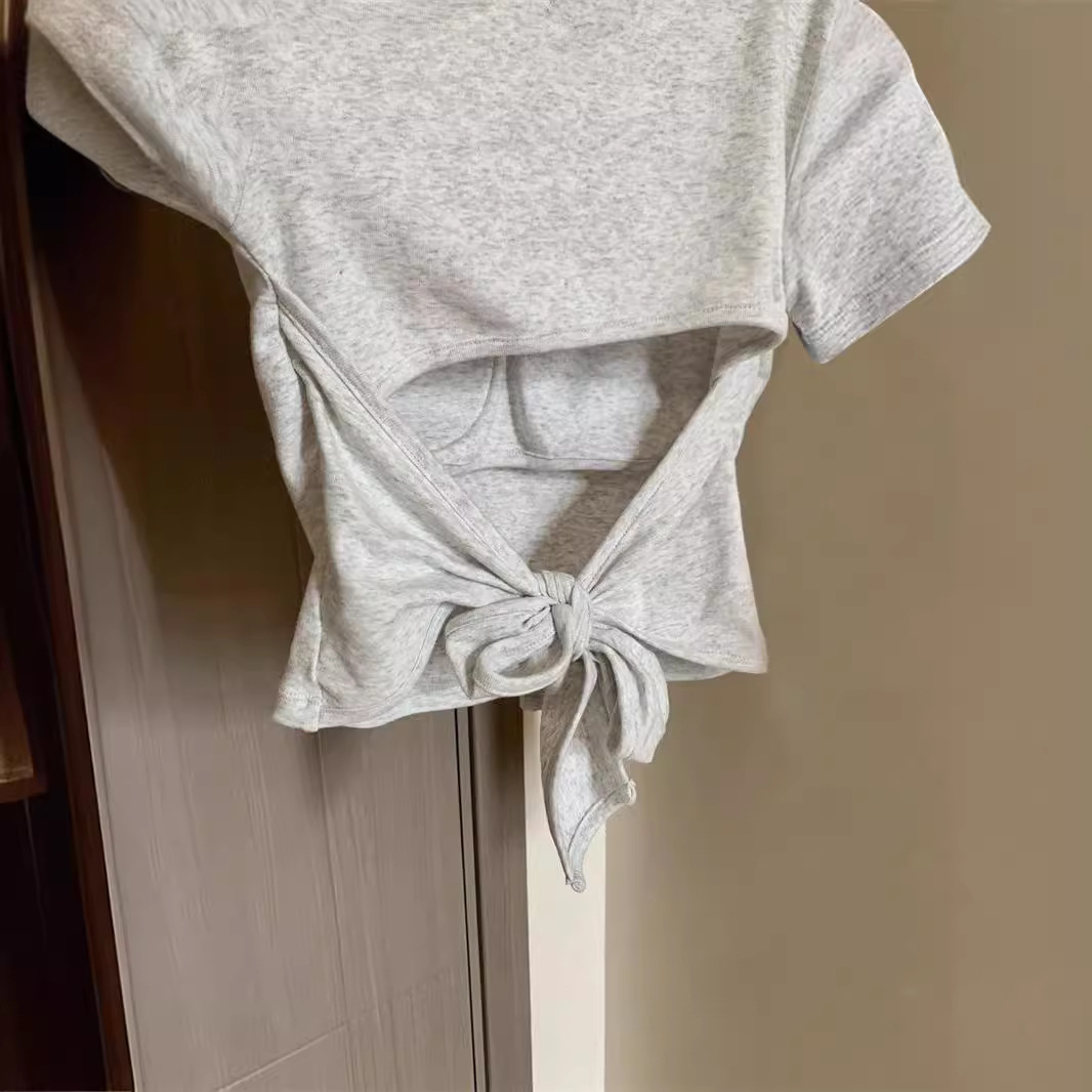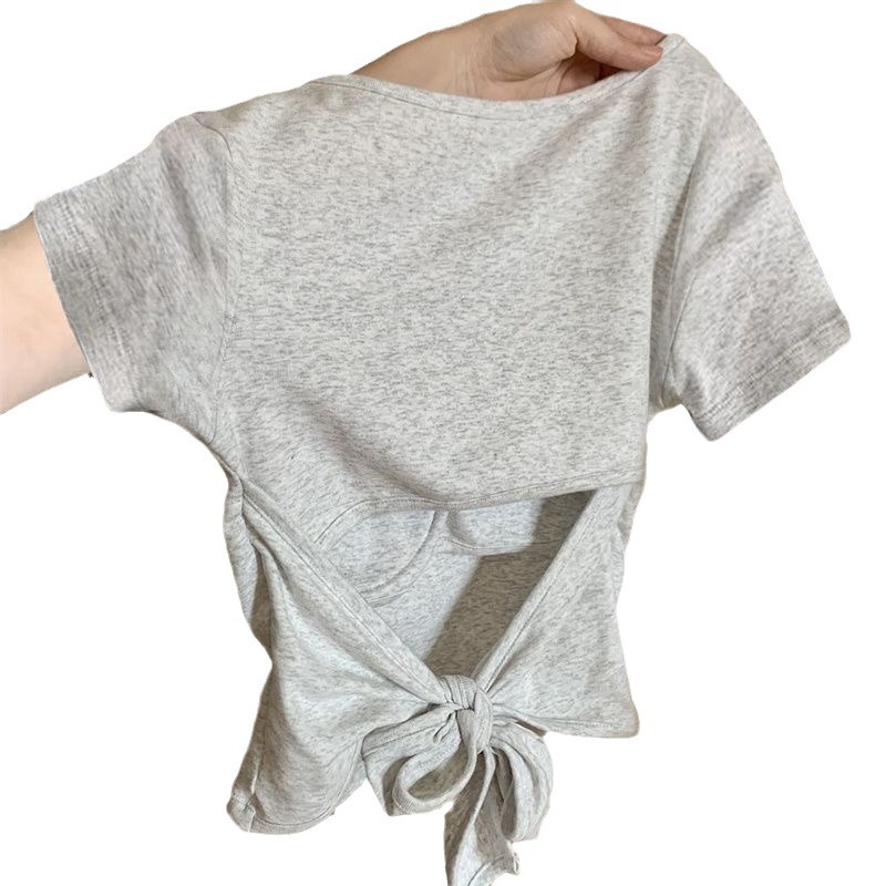 新款网红短袖t恤女夏ins超火后背镂空修身显瘦短款露背上衣潮