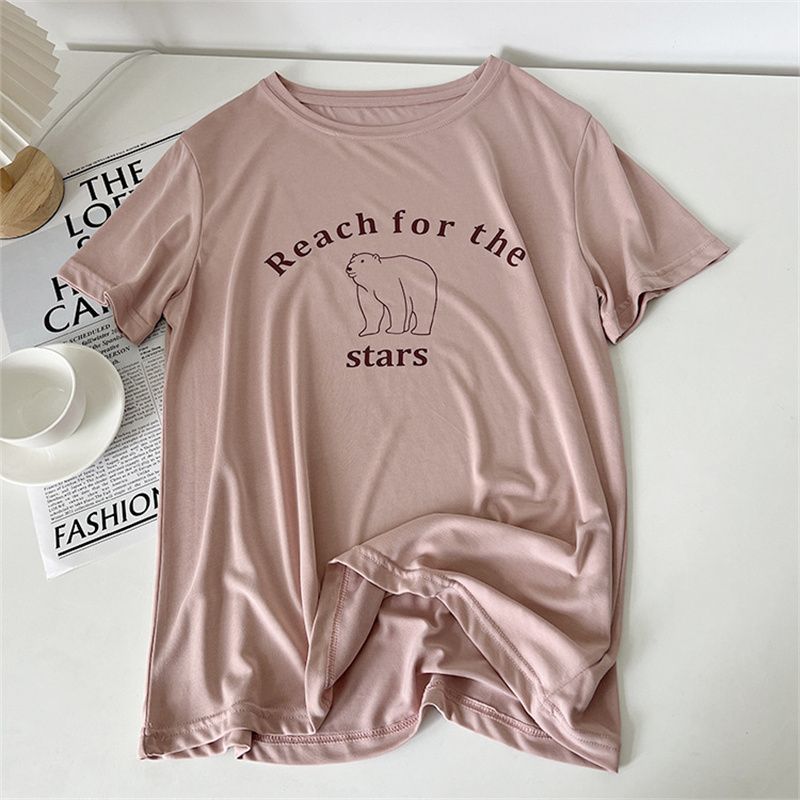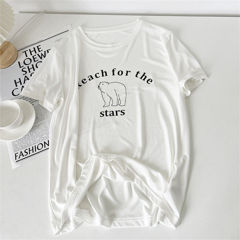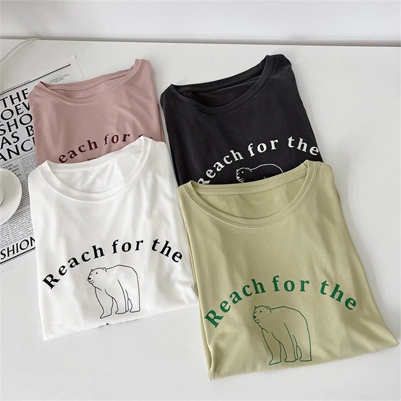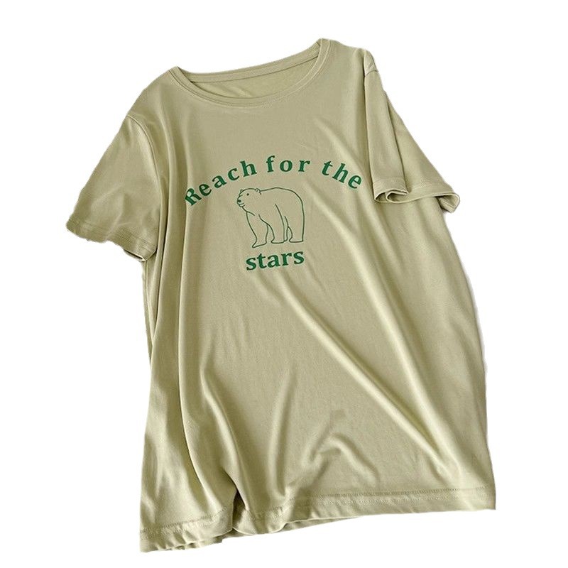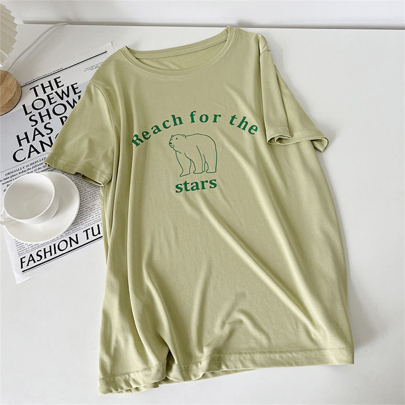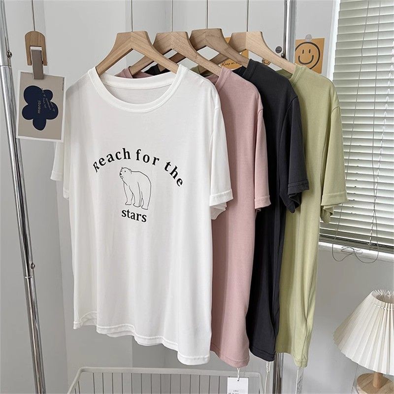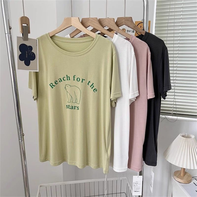 字母印花短袖t恤女超手感莫代尔简约百搭柔软宽松圆领体恤上衣