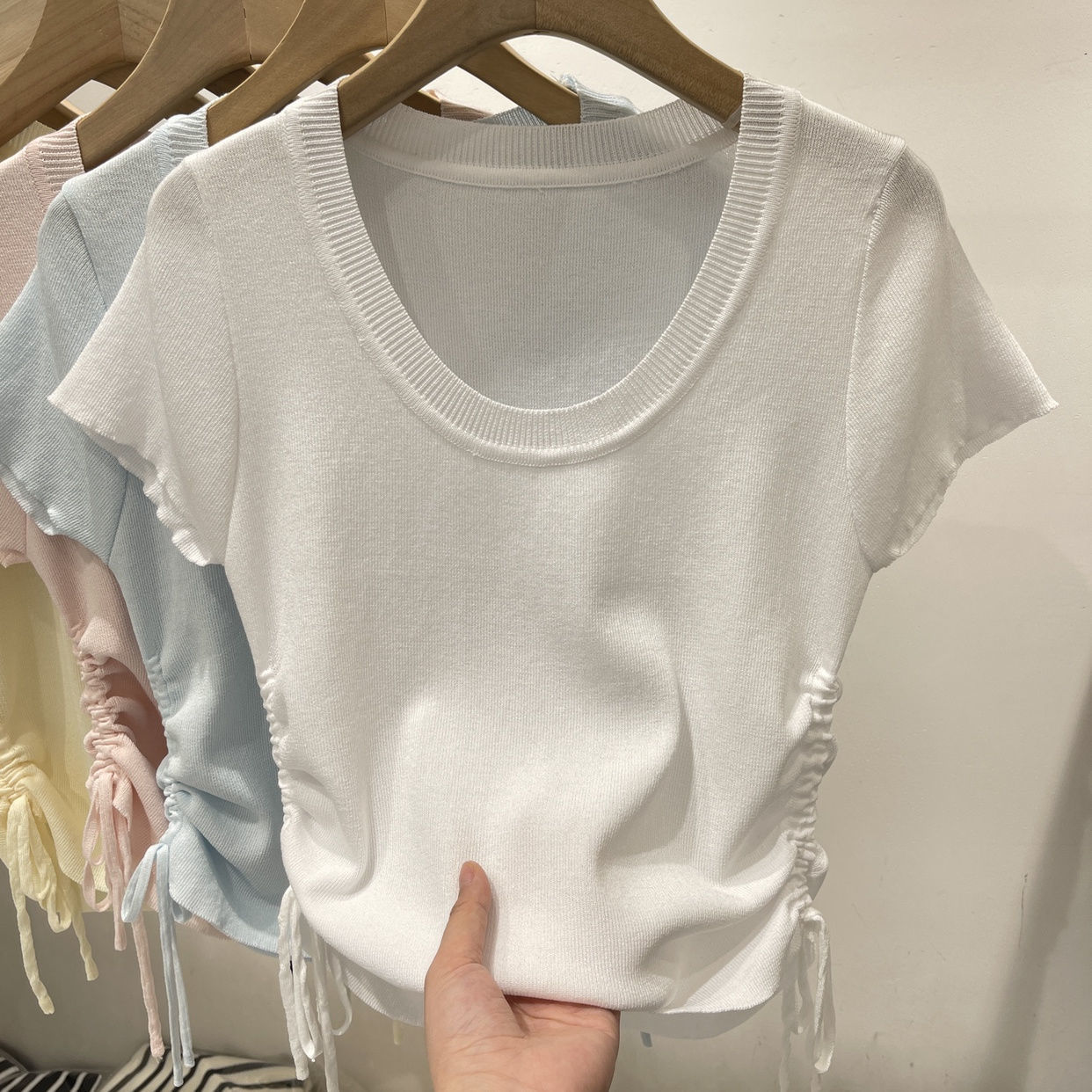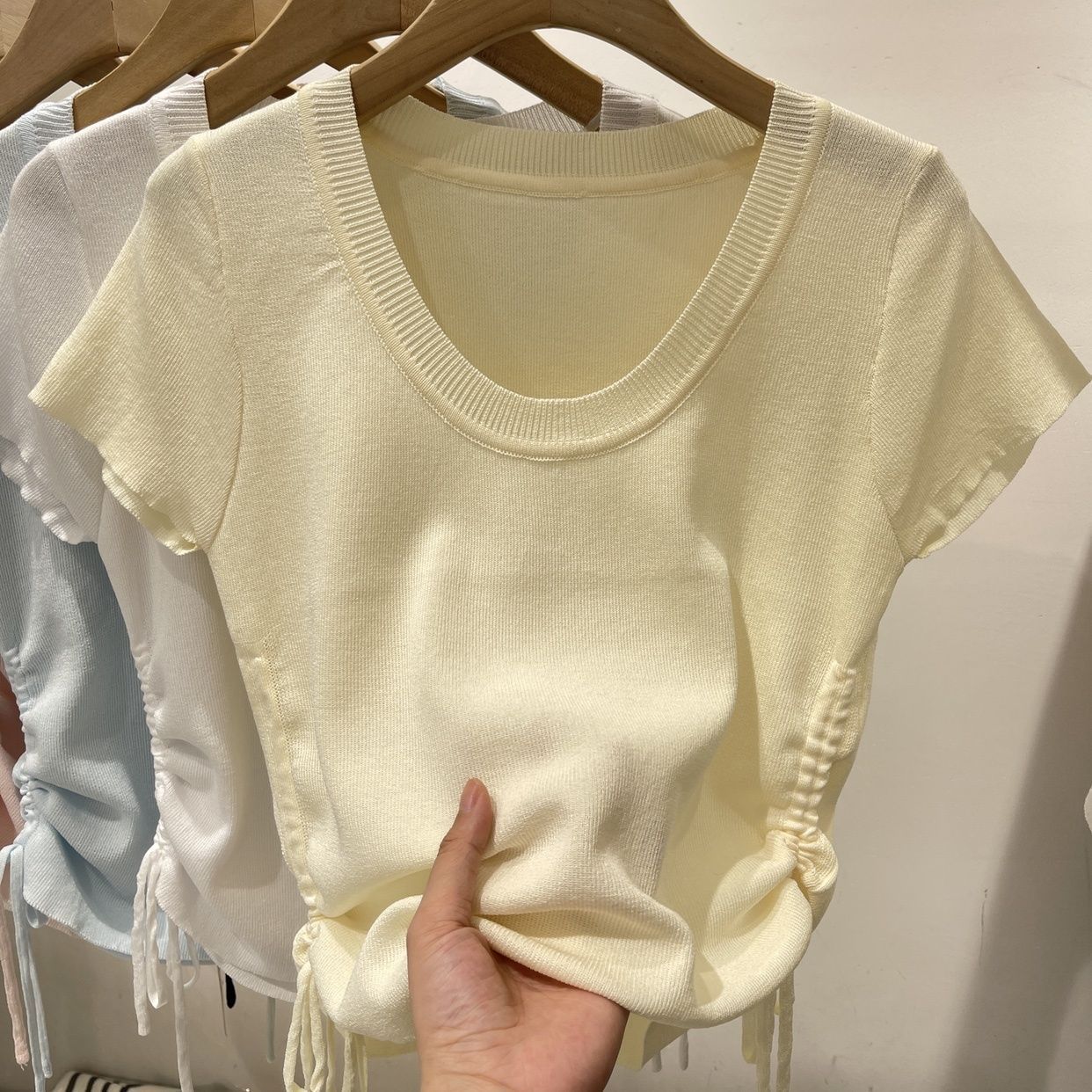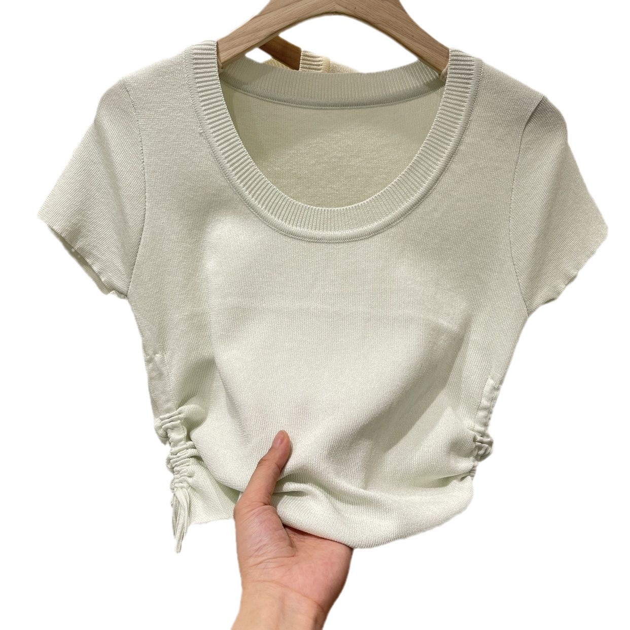 冰丝针织衫女夏季新款小个子短款收腰显瘦薄款短袖T恤上衣ins