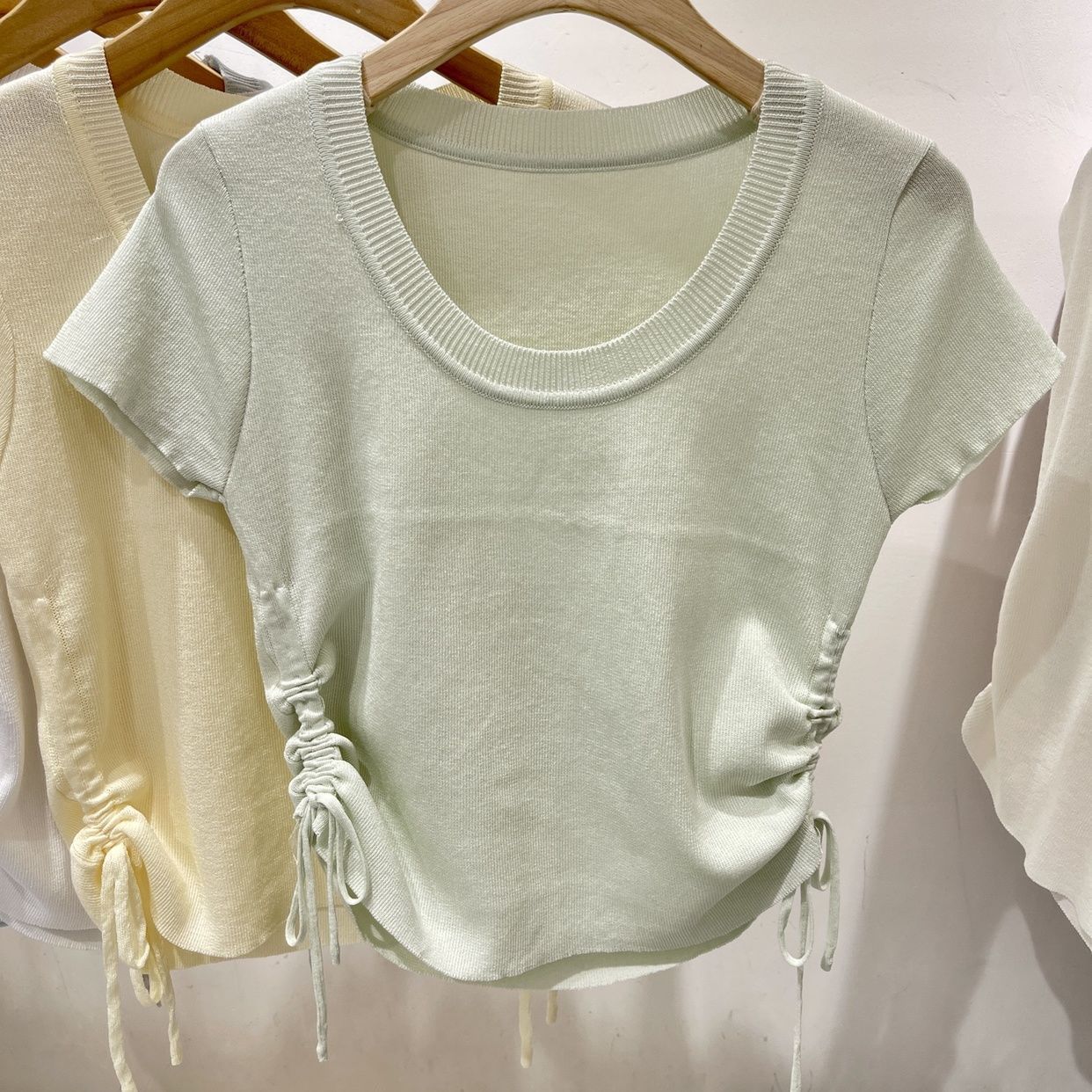 冰丝针织衫女夏季新款小个子短款收腰显瘦薄款短袖T恤上衣ins