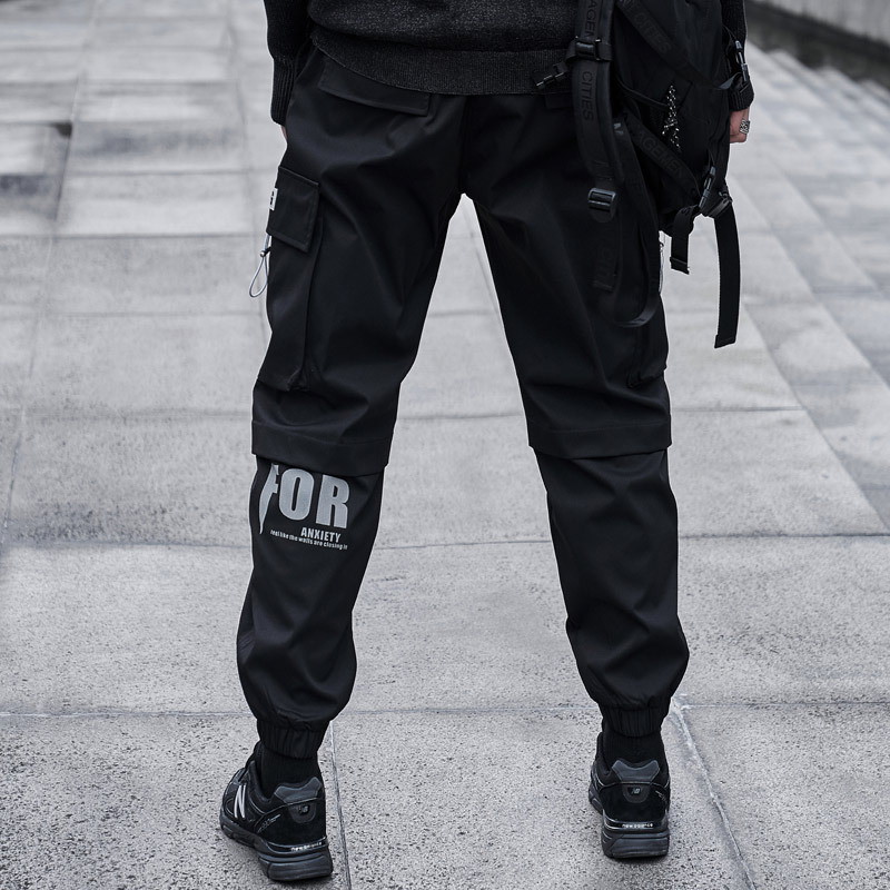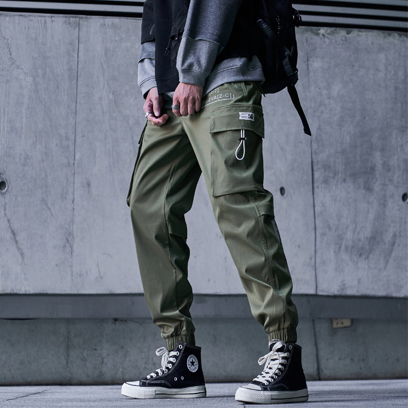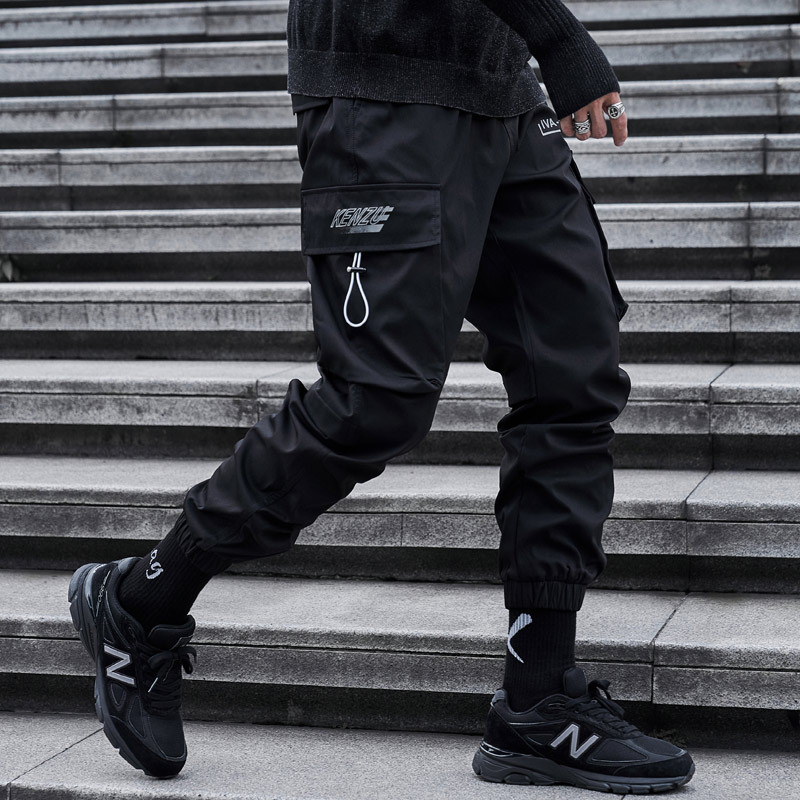 新款港风宽松大码工装裤男潮流青少年束脚九分男休闲裤