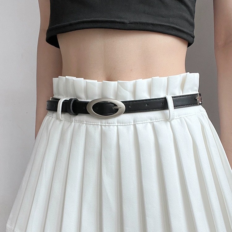 复古星星装饰腰带女辣妹百搭韩版黑色皮带新款潮夏季牛仔裤带