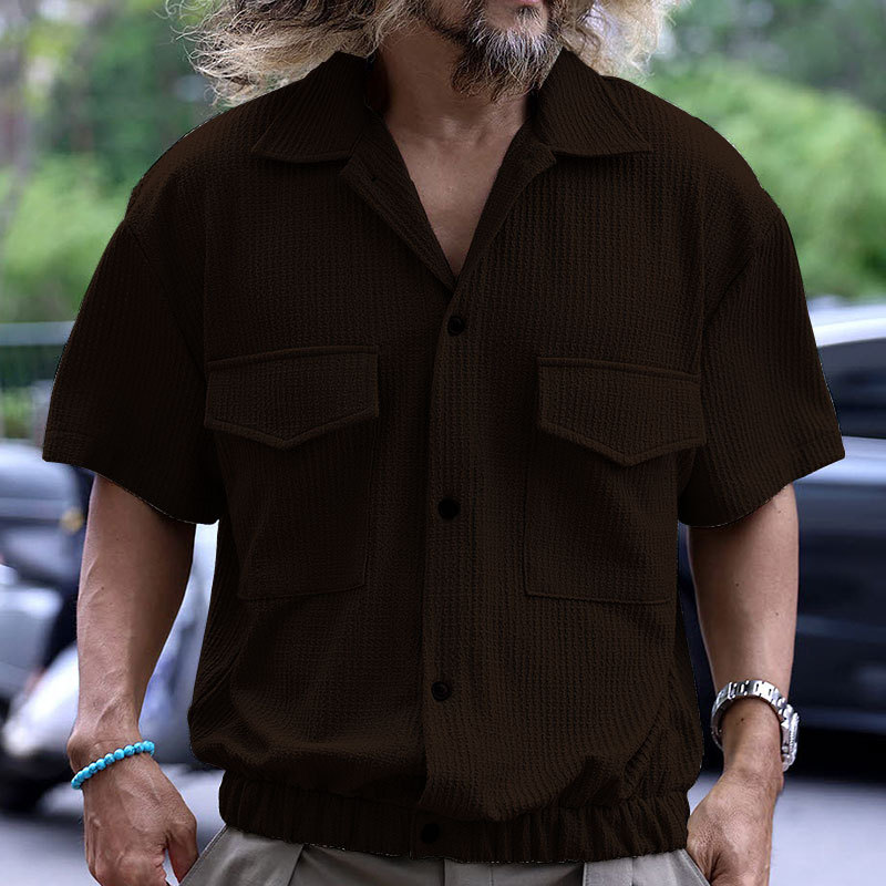 欧美男士衬衫开衫多口袋休闲男式夏季短袖衬衫T恤