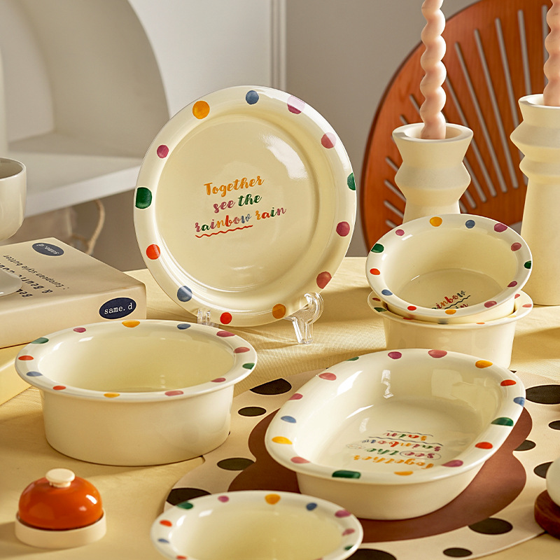 家用碗碟套装2025新款波点可爱陶瓷碗盘乔迁结婚礼物碗筷餐具