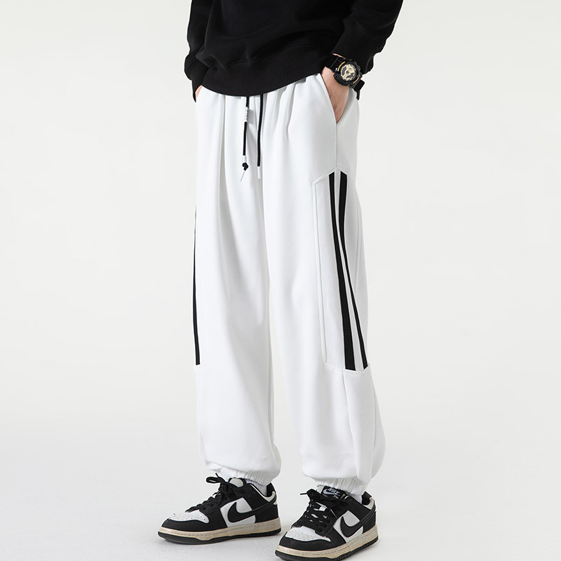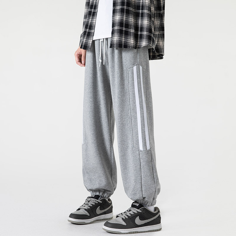 春夏新款时尚重磅纯棉男生卫裤宽松九分束脚裤子男潮流运动休闲裤