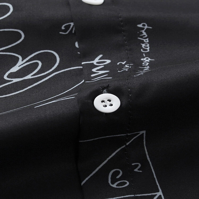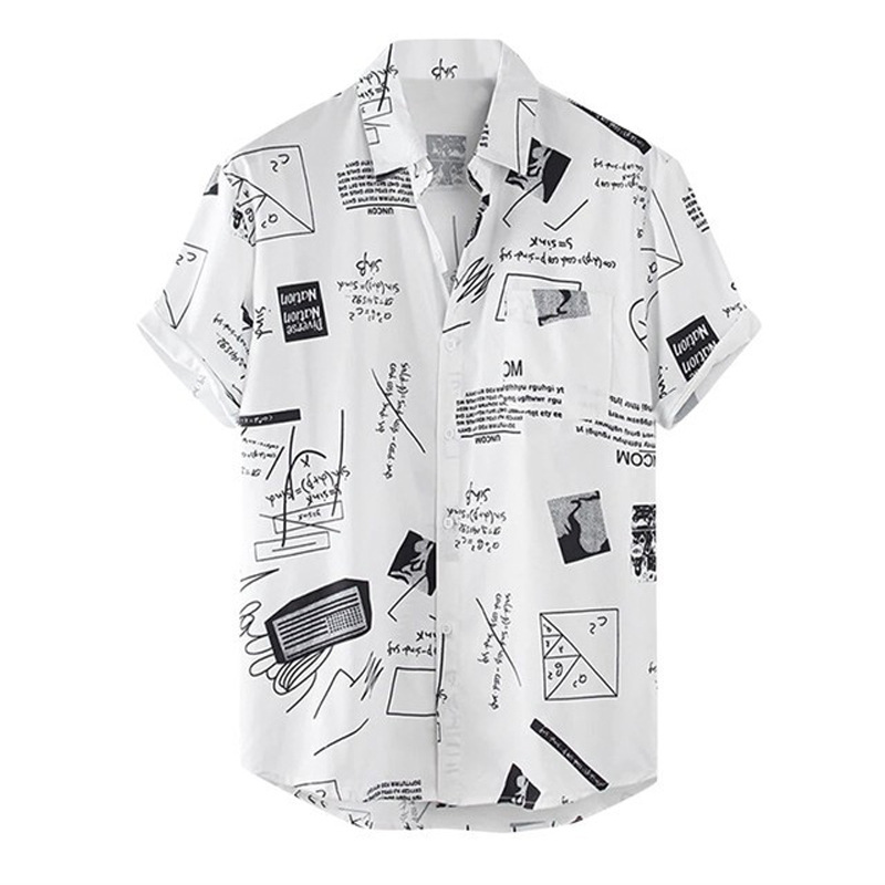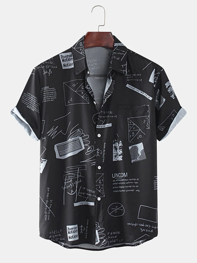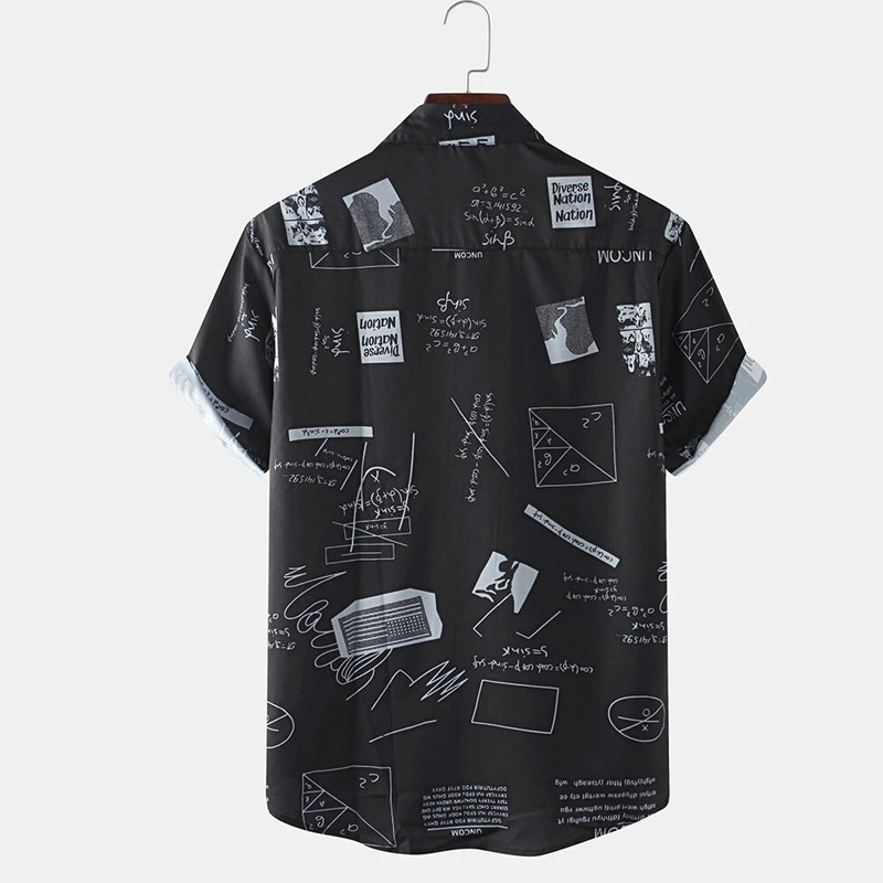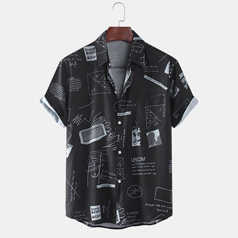 春夏新款欧美男士休闲宽松几何涂鸦印花短袖衬衣东南亚男衬衫