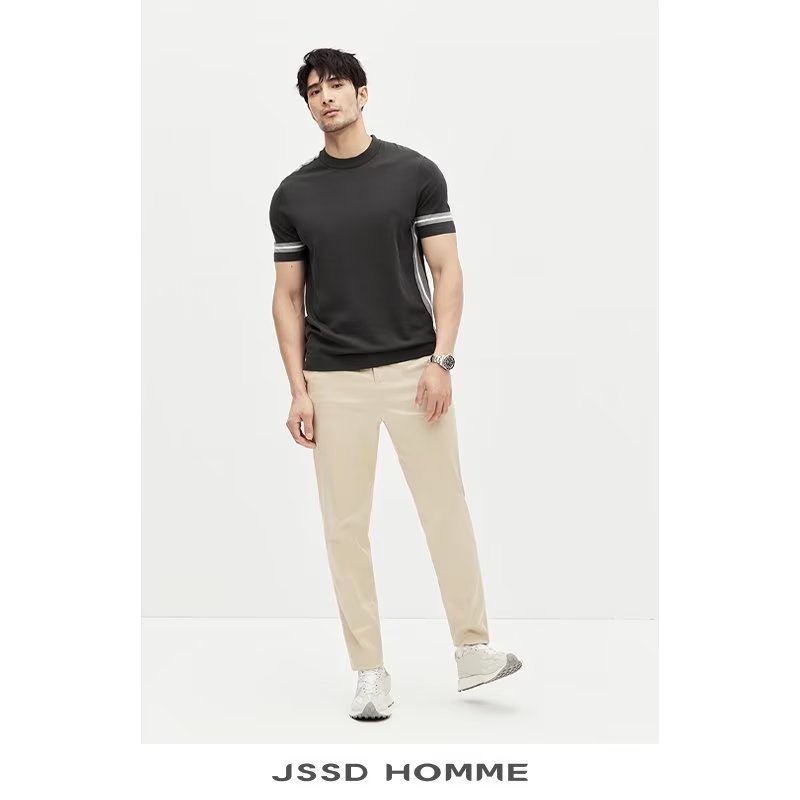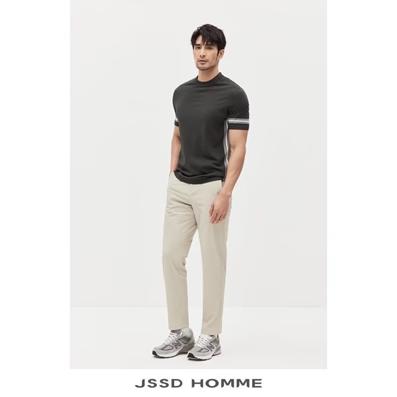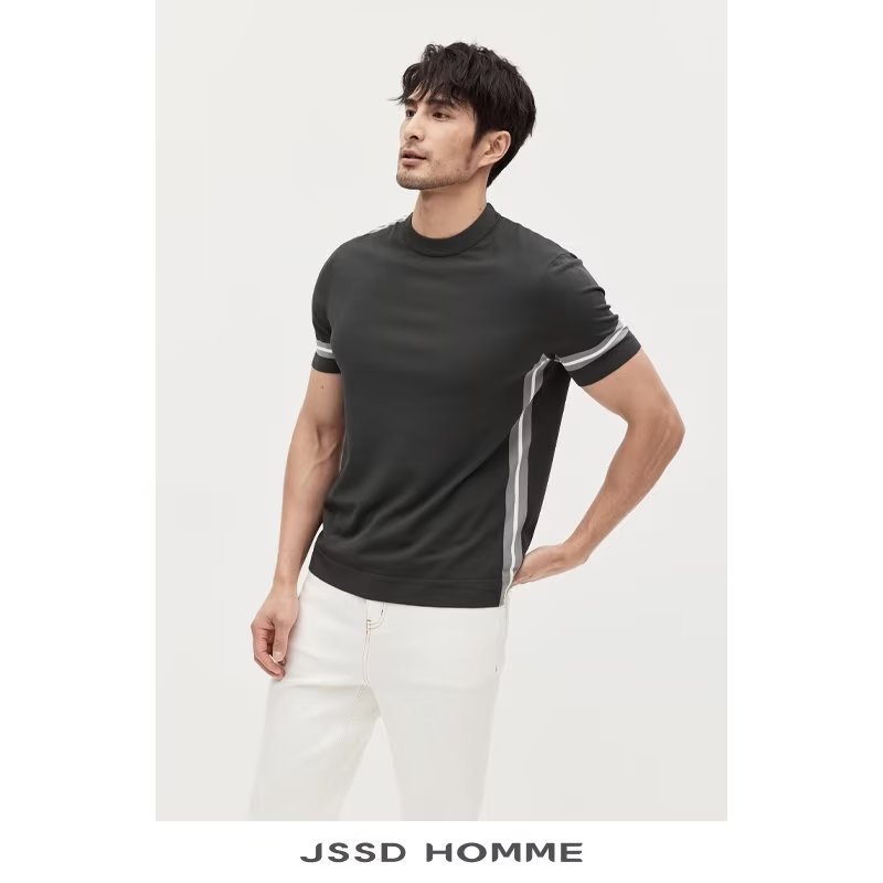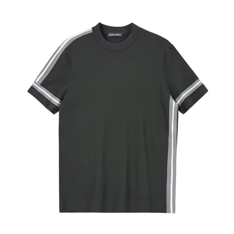 夏季男士冰丝针织T恤薄款圆领修身短袖毛T拼色紧身半袖潮流体桖衫