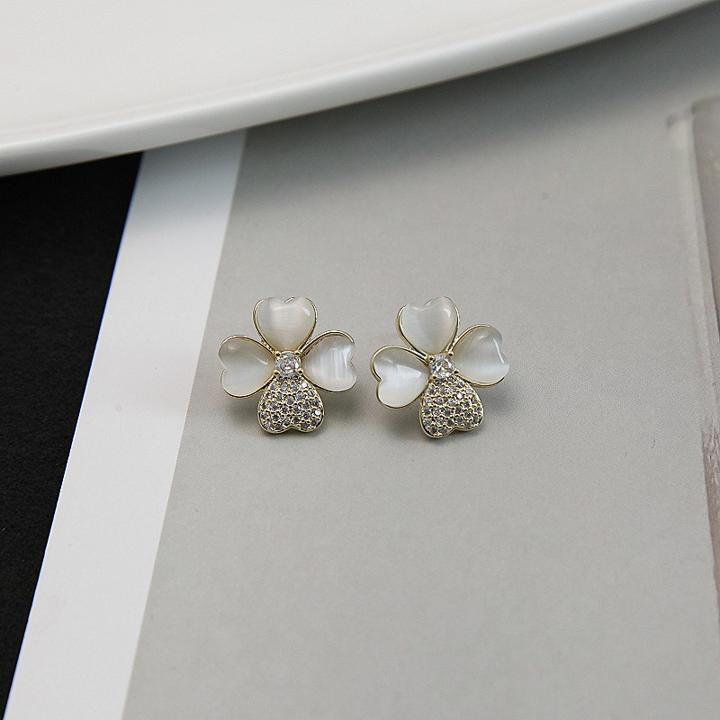 925银针韩版气质锆石爱心猫眼石四叶草耳钉 简约时尚精致耳环饰品